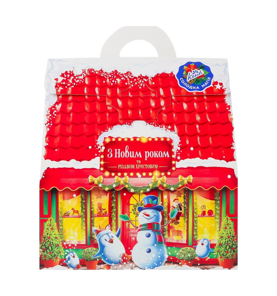 Набір кондитерський Konti Зимові свята 0.316кг. Склад: цукор, борошно пшеничне першого та вищого сорту, патока крохмальна кукурудзяна, жир рослинний негідрогенізований (олія пальмова та її фракції, емульгатор Е322, антиоксиданти (Е304, Е306)), замінник какао-масла нетемперований лауринового типу (повністю підрогенізована пальмова олія, емульгатори: Е492, Е322), жир рослинний негідрогенізований (олія пальмова та її фракції, емульгатор Е322), сироватка суха молочна, какао зі зниженим вмістом жиру (містить 10-12% какао-масла), олія пальмова рафінована дезодорована, емульгатори: лецитин соєвий, Е471, Е476, арахіс дроблений, крохмаль кукурудзяний, сіль, фундук дроблений, молоко сухе знежирене, ароматизатори, барвники: Е150d (барвник Е150d, консервант двоокис сірки), барвник антоціан (Е163, Е1400, консервант Е202, Е330), екстракт пурпурної солодкої картоплі, хлорофіл (барвники: Е141, Е100; емульгатор Е433), бета- каротин (вода, олія соняшникова, емульгатор: Е433, Е422, Е322, Е415, бета-каротин Е160а, антиоксидант Е202), розпушувач, регулятор кислотності гідрокарбонат натрію, желюючі агенти: пектин, каррагінан, розпушувач карбонат амонію, регулятори кислотності: кислота лимонна, цитрат натрію, коньяк, яєчний порошок, напівфабрикат трюфель (цукор, какао терте, какао-масло, ароматизатор), стабілізатор фермент інвертаза, вершки сухі, йогуртовий порошок, порошок полуниці сублімованої, порошок фруктовий апельсин, банан сублімованого сушіння, ароматизатор натуральний екстракт ванілі. Енергетична цінність продукту: 2035кДж/100г, 487ккал/100г. Поживна (харчова) цінність продукту: білки - 3г/100г, жири - 23.9г/100г, насичені жири - 16.2г/100г, вуглеводи - 64.7г/100г, з них цукри - 54.7г/100г, сіль - 0.2г/100г. Умови зберігання: зберігати за температури +18 (+/-3)ºC і відносній вологості повітря не більше 75%. Термін придатності: 9 місяців. Країна виробник: Україна. Виробник та адреса виробника: ТОВ ТБ Конті, вул. Введенська, 4, м. Київ, Україна, 04071; ТОВ УК, вул. Енергетиків, 126, м. Канів, Черкаська обл., Україна, 19003. Кількість: 21шт. Маса нетто: 0.316кг.