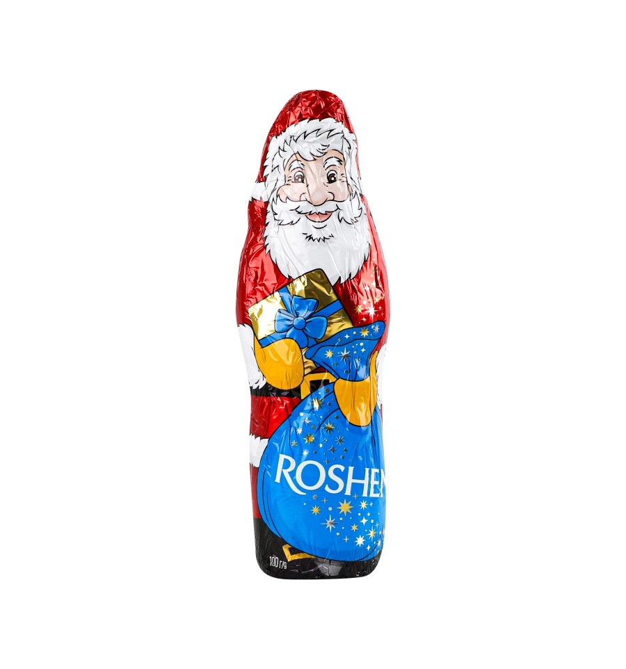 Фігура Roshen Святий Миколай з молочного шоколаду 100г. Склад: цукор, молоко сухе незбиране, какао-масло, какао терте, еквівалент какао-масла (негідрогенізовані олії: пальмова, ши), емульгатори (лецитини (містить сою), Е476), ароматизатор. Енергетична цінність продукту: 2246кДж/100г, 538ккал/100г. Поживна (харчова) цінність продукту: білки - 5.4г/100г, жири - 30.4г/100г, насичені жири - 18г/100г, вуглеводи - 59.3г/100г, з них цукри - 58.3г/100г, сіль - 0.17г/100г. Умови зберігання: зберігати за температури +18 (+/-3)ºC і відносній вологості повітря не більше 75%. Термін придатності: 1 рік. Країна виробник: Україна. Виробничі потужності та адреса виробничих потужностей: ПрАТ Вінницька кондитерська фабрика, вул. Є. Коновальця, 8, м. Вінниця, Україна, 21001. Маса нетто: 100г.