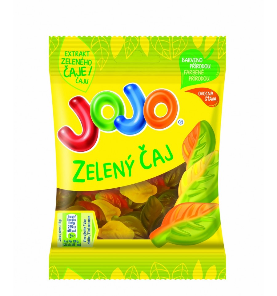 Цукерки желейні JOJO з фруктовими смаками та екстрактом зеленого чаю 80г. Склад: глюкозний сироп, цукор, вода питна, яблучний сік з концентрату (6%), желатин, кислоти (яблучна кислота, винна кислота, лимонна кислота), екстракт зеленого чаю (0.4%), рослинні концентрати (сафлор, редька), концентрат спіруліни, ароматизатори (лимон, персик, білий чай), регулятор кислотності (аскорбат натрію), олія пальмова, глазуруючий агент (віск карнаубський). Енергетична цінність продукту: 1414кДж/100г, 333ккал/100г. Поживна (харчова) цінність продукту: білки - 4.7г/100г, жири - <0.5г/100г, насичені жири - 0.1г/100г, вуглеводи - 77г/100г, з них цукри - 52г/100г, сіль - 0.06г/100г. Умови зберігання: зберігати за температури не вищої ніж +25ºC і відносній вологості повітря не більше 70%. Термін придатності: 12 місяців. Країна виробник: Чеська Республіка. Виробничі потужності та адреса виробничих потужностей: Nestle Cesko, завод Сфінкс Палацкего, 134, Голешов, Чехія, 769 81. Імпортер та адреса імпортера: ТОВ Нестле Україна, вул. Велика Васильківська, буд. 139, м. Київ, Україна, 03150. Маса нетто: 80г.