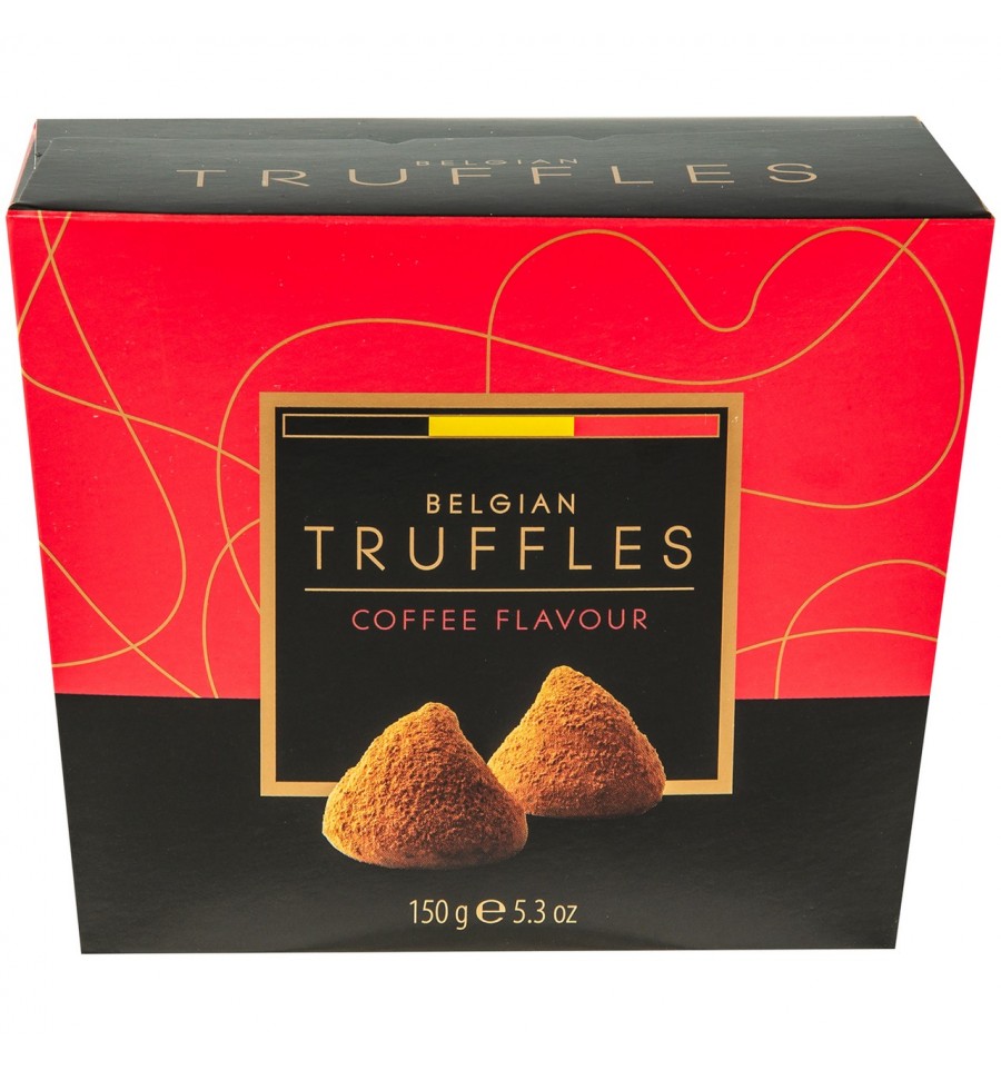 Трюфельні цукерки зі смаком кави. Без ГМО. Склад: цукор, рослинні жири (кокосовий, пальмовий, пальмове ядро), знежирений какао-порошок (18,5 %), суха молочна сиворотка, кава (2%), емульгатор: соєвий лецитин, сорбітан тристеарат. Натуральний ароматизатор ванілі. Містить сою та молоко. Маса нетто: 150 г ℮. Калорійність та поживна цінність на 100 г. продукту: 556 кКал; білки 4,8 г., жири 37 г., вуглеводи 48,0 г. Виробник / Адреса потужностей виробництва: “Q Chocolate“ Drapstraat 88 B, 9220 Hamme, Бельгія. Тел. +32 52 52 59 45.«Вжити до» та номер партії: вказано на звороті (дні) або на боці упаковки. Зберігати в сухому прохолодному місці за температури від +12 до + 18 градусів °С. Імпортер та ексклюзивний дистриб’ютор в Україні: ТОВ "ЕЛЬБФАЙН", вул. Голосіївська, будинок 7, корпус 2, літера «А», офіс 9-2, м. Київ, 03039, Україна, тел.: +38 044 251 45 44