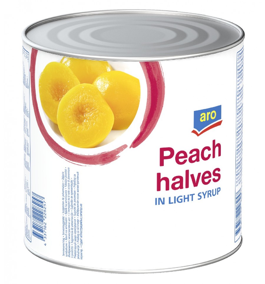Персик Aro половинки в легкому сиропі 2.65л. Може містити кісточки плодів. Склад: персик, вода, цукор, регулятор кислотності (лимонна кислота). Eнергетична цінність на 100г продукту: 63 ккал / 268 кДж, Жири - 0,1 г, Насичені жири - 0 г, Вуглеводи - 14,3 г, Цукри -14,1 г, Білки - 0,5 г, Сіль - 0,01 г. Дата "Краще спожити до": вказана на кришці/дні банки. Зберігати в сухому та прохолодному місці. Після відкриття зберігати в холодильнику в неметалевому посуді і вжити протягом 3 діб. Імпортер: ТОВ "Метро Кеш енд Кері Україна". Адреса імпортера: 02140, Україна, м.Київ, просп.П.Григоренка, буд. 43. (www.metro.ua). З питань щодо продукту та прийняття претензій звертайтесь за тел. гарячої лінії імпортера 0800 501 401 (безкоштовно в межах України). Маса нетто: 2,6кг. Маса нетто основного продукту: 1,5кг.