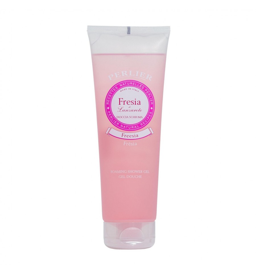 Гель-піна для душу «Фрезія», 250 г. Делікатно очищає шкіру, не порушуючи водного балансу та не спричиняючи сухості. Завдяки легкій піні залишає відчуття свіжості та еластичності, огортаючи ніжним квітково-деревним ароматом фрезії з Лансароте. У формулі: мигдальна олія (живильна, загоювальна, активізує відновлення клітин і розгладжує шкіру), вітамін F (антибактеріальний компонент), протеїни шовку (зволоження й пом’якшення, уповільнення старіння шкіри). Склад: вода (Aqua), лауретсульфат натрію, хлорид натрію, парфум (ароматизатор), ко-камідопропілбетаїн, гліцерин, екстракт фрезії рефракті, бензоат натрію, глюконат натрію, лимонна кислота, бензотріазолілдодецил п-крезол, бензилсаліцилат, альфа-ізометил іонон, гексилциннамаль, цитронелол, гідроксицитронеллал, гексаматилінданопіран, тетраметил ацетилоктагідронафталени, ліналілацетат, CI 16035 (червоний 40), CI 17200 (червоний 33). Умови зберігання: при температурі від +5 °C до +25 °C та відносній вологості 55–70 % у закритій упаковці. Строк придатності – 3 роки. Для зовнішнього використання. Не використовувати після закінчення терміну придатності. Країна виробництва – Італія. Виробник – Perlier S.R.L., Tenuta La Carignana, 10072 Каселль Торінес, Італія. Дистриб’ютор – ТОВ «Альтернатива-СВ», м. Київ, вул. Магнітогорська, 1, офіс 516, тел. 067-254-39-33. Висновок СЕ-експертизи додається.