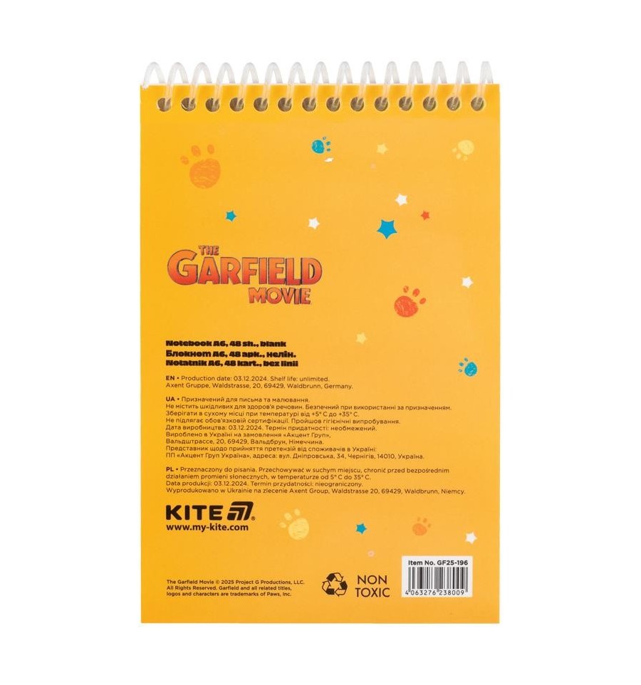 Блокнот Kite GF25-196 – яскравий дитячий блокнотик у зручному форматі. Він з нетерпінням чекає, коли дітлахи наповнять його чисті сторінки своїми неповторними записами та малюнками.У блокноті так приємно зберігати думки, робити нотатки та ескізи. Ефектна строката обкладинка та кольорові нелінійовані листи піднімають настрій та надихають на творчість.Завдяки кріпленню на пластиковій спіралі, можна акуратно вирвати будь-який аркуш, не пошкодивши блокнот або розкрити його на цілих 360°. Кишеньковий формат – компактний, його можна завжди носити із собою у сумочці, рюкзаку або просто в кишені.Зберіть повну колекцію канцелярії Kite у крутій ліцензії Garfield, щоб улюблені персонажі завжди були поруч.Особливості:48 кольорових щільних нелінійованих аркушів – для записів та творчості; компактний формат А6- (97х150 мм) – щоб усюди брати його із собою; кріплення на пластиковій спіралі – зручно відкривати під будь-яким кутом; обкладинка із щільного картону – практична та міцна; ліцензія Garfield– для натхнення.