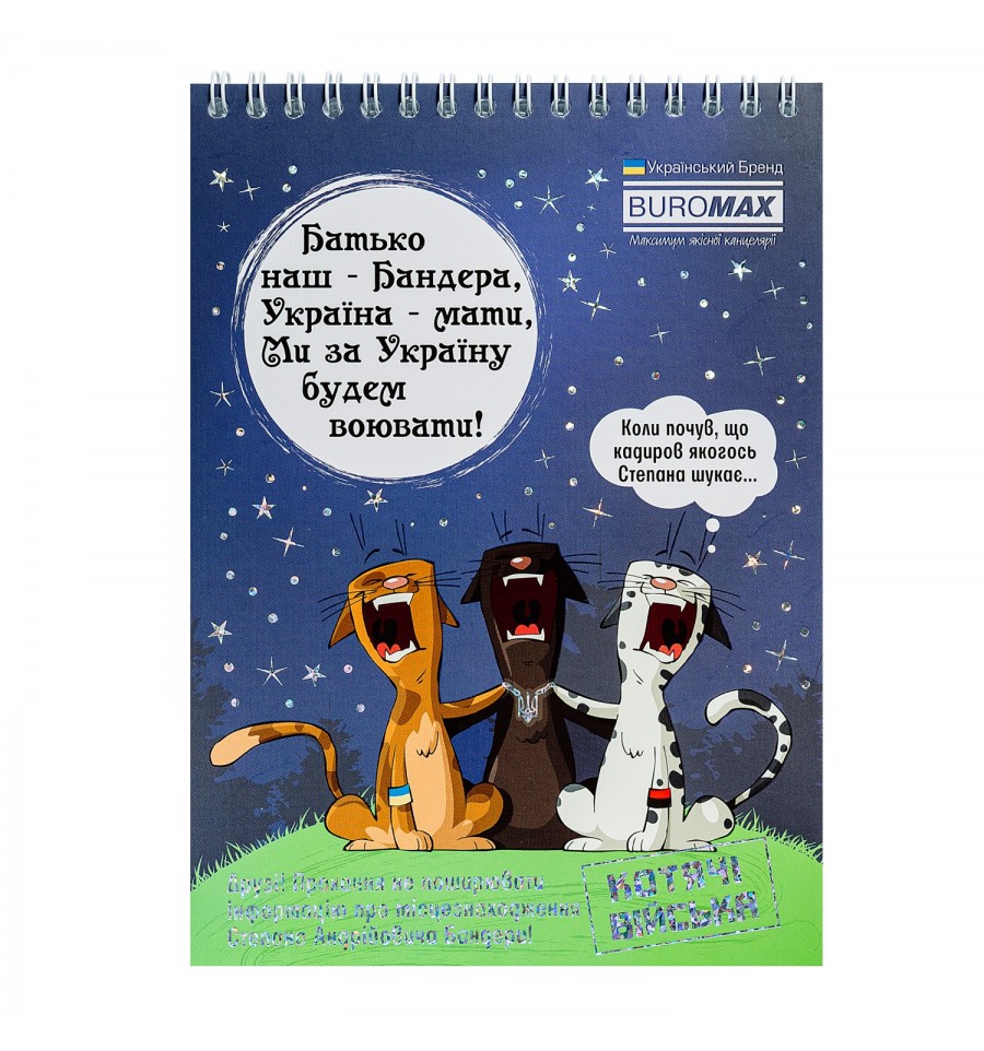 Блокноти PATRIOT від BUROMAX це актуальне рішення для збереження записів, нотаток, думок. Цікаві обкладинки, які містять мотивуючі вислови, направленні на зарядження позитивом, вірою у міцність і перемогу, мають візуалізації думок і мрій багатьох людей, обов'язково сподобаються широкому колу як маленьких, так і дорослих українців. Завдяки лінійці дуже різноманітних дизайнів, такий блокнот може стати приємним актуальним подаруночком або незамінним другом для кожного.Формат ±А5 Кріплення зверху на металевій пружині, що дозволяє легко перевертати аркуші (все лягає ідеально) Лініювання клітинка, без рамки 48 аркушів Внутрішній блок - офсетний папір білого кольору щільністю 55 г/м² Обкладинка з целюлозного крейдованого картону щільністю 230 г/м² Поліграфічні ефекти обкладинки - вибірковий УФ лак, тиснення фольгою в тон дизайну 1 гривня на ЗСУ (1 грн з покупки даного товару ТОВ "Імпорт-Офіс Україна" перерахує у фонд "Повернись живим")
