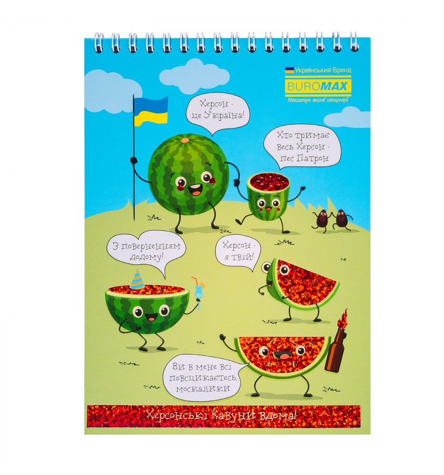 Блокноти PATRIOT від BUROMAX це актуальне рішення для збереження записів, нотаток, думок. Цікаві обкладинки, які містять мотивуючі вислови, направленні на зарядження позитивом, вірою у міцність і перемогу, мають візуалізації думок і мрій багатьох людей, обов'язково сподобаються широкому колу як маленьких, так і дорослих українців. Завдяки лінійці дуже різноманітних дизайнів, такий блокнот може стати приємним актуальним подаруночком або незамінним другом для кожного.Формат ±А5 Кріплення зверху на металевій пружині, що дозволяє легко перевертати аркуші (все лягає ідеально) Лініювання клітинка, без рамки 48 аркушів Внутрішній блок - офсетний папір білого кольору щільністю 55 г/м² Обкладинка з целюлозного крейдованого картону щільністю 230 г/м² Поліграфічні ефекти обкладинки - вибірковий УФ лак, тиснення фольгою в тон дизайну 1 гривня на ЗСУ (1 грн з покупки даного товару ТОВ "Імпорт-Офіс Україна" перерахує у фонд "Повернись живим")
