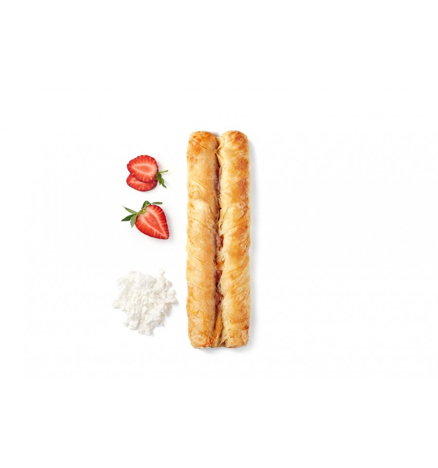РОЛЛІНІ З ВИТЯЖНОГО ТІСТА З ПОЛУНИЦЕЮ ТА СОЛОДКИМ СИРОМ ЗАМОРОЖЕНІ TM “VALESTO”. Склад: начинка (начинка з полуницею – 20% (полуниця - 13%, цукор, крохмаль кукурудзяний, вода питна, целюлоза, консервант сорбат калію, регулятор кислотності лимонна кислота), начинка з солодким сиром – 20% (сир кисломолочний 9% жиру (нормалізоване молоко, агент твердіння хлорид кальцію, закваска, бактеріальний сичужний фермент) – 15,6%, цукор, меланж яєчний, замінник вершків на рослинній основі (вода питна, повністю гідрогенізований рослинний жир (пальмовий) 26%, молочний протеїн, незбиране сухе молоко, рослинні волокна, стабілізатори: сорбітовий сироп, целюлоза, карбоксиметилцелюлоза, альгінат натрію; регулятор кислотності фосфату натрію, емульгатори: ефіри гліцерину, діацетилвинної та жирних кислот, соєвий лецитин; сіль кухонна, ароматизатор, барвник бета-каротин)); тісто (борошно пшеничне вищого сорту, вода питна, олія соняшникова рафінована, сіль кухонна, клейковина пшенична); змащування (жир кондитерський (рослинні олії та жири (рафіновані, дезодоровані, вибілені): пальмова олія, соняшникова олія, емульгатор (моно- і дигліцериди жирних кислот))); льєзон (меланж яєчний, замінник вершків на рослинній основі (вода питна, повністю гідрогенізований рослинний жир (пальмовий) 26%, молочний протеїн, незбиране сухе молоко, рослинні волокна, стабілізатори: сорбітовий сироп, целюлоза, карбоксиметилцелюлоза, альгінат натрію; регулятор кислотності фосфату натрію, емульгатори: ефіри гліцерину, діацетилвинної та жирних кислот, соєвий лецитин; сіль кухонна, ароматизатор, барвник бета-каротин)); посипання (цукор в гранулах). Може містити сліди горіхів та кунжуту. Інгредієнти, виділені курсивом, можуть викликати алергію або непереносимість. Продукт не підлягає повторному заморожуванню!. ТУ У 10.8-40292090-001:2016. Поживна цінність на 100 г (g) продукту: жири: 17,0 г (g), з них насичені: 5,0 г (g); вуглеводи: 33,6 г (g), з них цукри: 9,5 г (g); білки: 7,2 г (g); сіль: 0,58 г (g). Енергетична цінність на 100 г (g) продукту: 1324 кДж (kJ) / 316 ккал (kcal). Спосіб приготування: дістати ролліні з упаковки, не розморожуючи, викласти на деко. Розігріти духовку до 210⁰С та випікати впродовж 17-25 хв (min) до золотистого кольору при температурі 185⁰С. Смачного!. Умови зберігання: при температурі не вище мінус 18 ˚С. Строк придатності: 9 місяців від дати виготовлення. Країна походження: Україна. Виробник: ТОВ «ЮГФУД», 19 км Старокиївської дороги, м. Одеса, Одеська область, 65025, Україна. Тел.: +38-048-771-79-97. Адреса виробничих потужностей: 463 км + 700 м автошляху Київ-Одеса, Одеський район, Одеська обл., 65031, Україна. Дата виробництва / пакування та дата «Вжити до» зазначені на упаковці. Дата заморожування та номер партії L відповідають даті виробництва / пакування.
