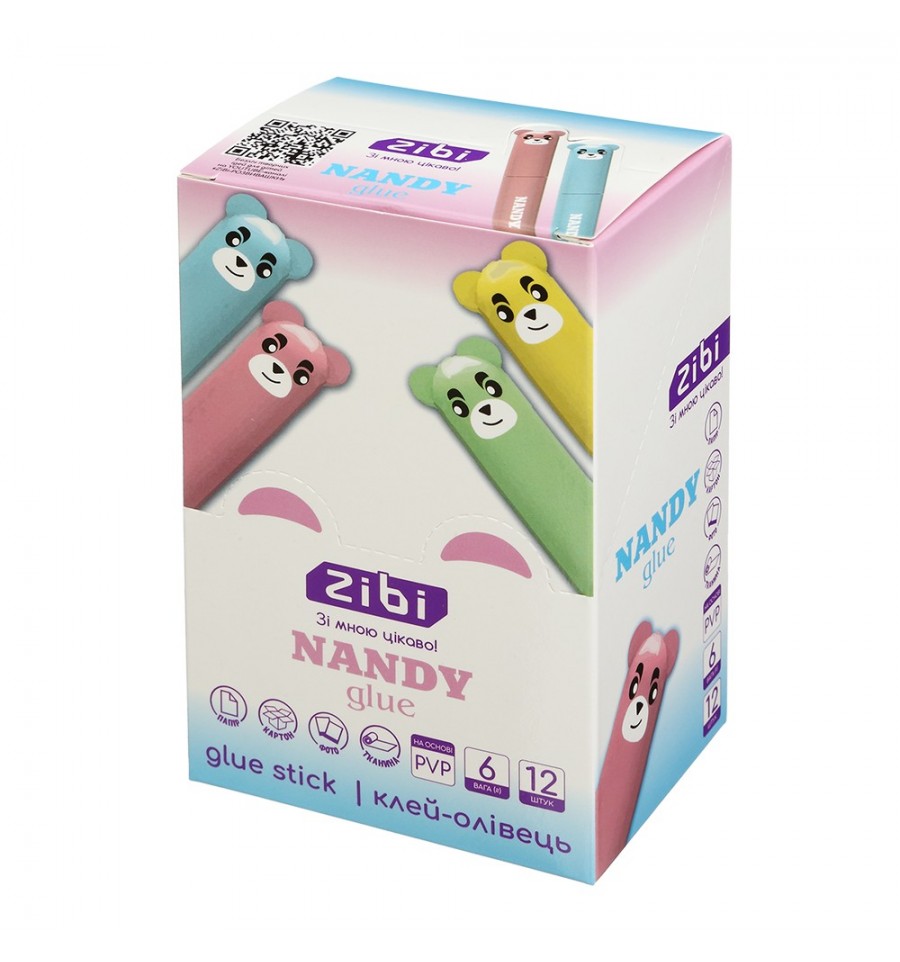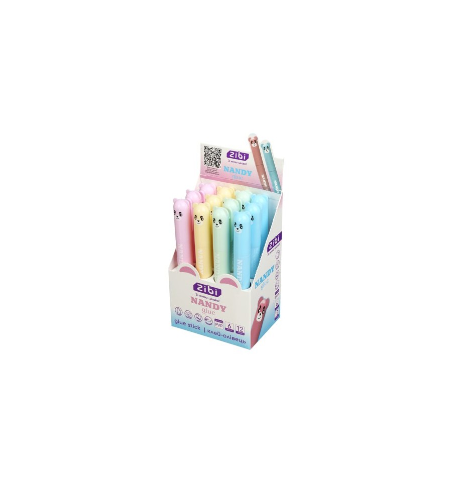 Клей-олівець серії NANDY від ZiBi – для склеювання паперу, картону, фотографій, тканини. Підходить для творчості, декору, аплікацій у школі, садочку, на гуртках, майстер-класах, а також вдома. Може використовуватися дітьми шкільного та дошкільного віку, учасниками творчих гуртків, викладачами, а також дорослими для побутових потреб.• ковпачок з кліпом запобігає висиханню клею • колір клею – білий, після висихання – прозорий • не деформує поверхні та не змінює їх колір • легко змивається водою • без різкого запаху • не містить розчинників • зберігає клеючу властивість при низькій температурі • має привабливий дизайн: видовжений круглий корпус у формі ручки, ковпачок-декор з вушками і мордочкою • колір тюбика – асорті (рожевий, м’ятний, блакитний, жовтий)Технічні характеристики: • тип – олівець • маса – 6 г • колір – білий • розмір тюбика – 140×17 ммСклад: PVP (полівінілпіролідон)