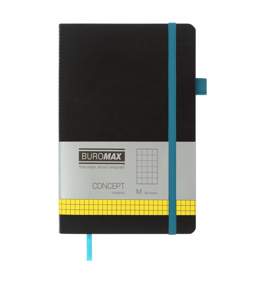 Записні книги від ТМ BUROMAX – надійні та зручні помічники у щоденному житті сучасної людини! Записна книга CONCEPT - це лаконічний та незамінний аксесуар для офісних працівників, студентів, творчих майстрів та інших людей, що ведуть активну, насичену подіями діяльність. Оздоблення у вигляді строчки "зигзаг" на корінці, продольна гумка для фіксації, закладка-ляссе та зріз аркушів внутрішнього блоку виконані в одному яскравому контрасному кольорі, що надає записній книжці родзинку та робить її дуже привабливою. - Розмір: М (125х195 мм) - Гнучка обкл. з чорної структурної штучної шкіри з поздовжньою гумкою для фіксації книжки в закритому стані - Кількість аркушів: 96 - Внутрішній блок – кремовий офсетний папір 80 г/м² - Тонований зріз аркушів внутрішнього блоку в колір оздоблення - Форзаци з щільного чорного паперу в колір обкладинки - Лініювання – клітинка - Петелька – гумка для ручки - Закладка - лясе в колір оздоблення - Глибока кишеня зі щільного паперу для нотаток, візитівок, карток на задньому форзаці - Індивідуальна упаковка: прозорий пакет - Можливість корпоративного брендування. Вид тиснення: сліпе тиснення та тиснення фольгою.