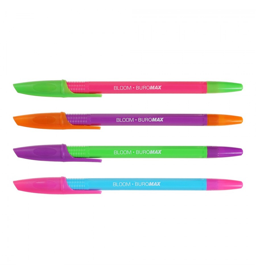 Кулькова ручка BLOOM від BUROMAX - класичний пишучий інструмент для бізнесу, школи та дому. Корпус виготовлений у яскравих контрастних кольорах. Така універсальна ручка одночасно дуже проста і стильна, має надійний пишучий вузол і чорнило з покращеними показниками в'язкості, підійде для офісних працівників, для використання в побуті, для навчання тощо.Товщина лінії письма 0,7 мм Колір чорнила – синій Збалансоване чорнило рівномірно лягає на папір, залишаючи чітку насичену лінію при мінімальному натисканні Шестигранний корпус з пластику яскравого насиченого кольору (рожевий, салатовий, фіолетовий, блакитний), має рифлення в зоні захвату, заглушка та ковпачок контрастного кольору Змінний стрижень завдовшки 143 мм (підходить стрижень BM.8000) Ковпачок дозволяє приховати пишучий наконечник і запобігти забрудненню чорнилом сусідніх речей Кліп на ковпачку дозволяє легко закріпити ручку на щоденнику, блокноті, планшетці, кишені сорочки, рюкзака або сумки Групове пакування: картонна коробка містить 50 ручок у кольорах асорті