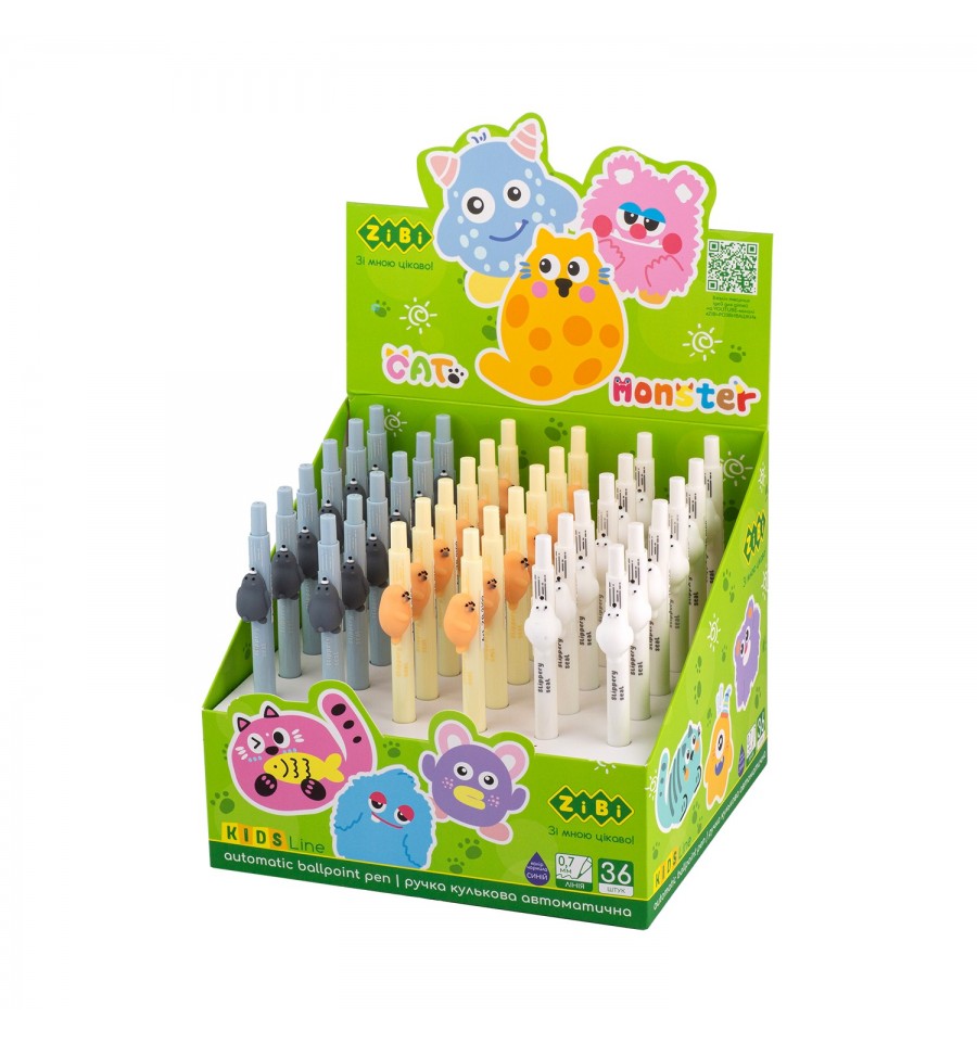 Автоматична кулькова ручка SWEET SEAL від ZiBi – відмінний інструмент для письма на кожен день. Оригінальне дизайнерське рішення у вигляді стильного креативного декору на корпусі, робить ці ручки улюбленим функціональним помічником школярів, студентів, а також творчих і креативних людей для використання у навчанні, веденні щоденників, записі нових ідей та планів.товщина лінії письма 0.7 мм колір чорнила: синій надійний пишучий вузол, виготовлений за класичною для кулькових ручок технологією кругла форма корпусу оптимального діаметру, зручна для тривалого письма кнопковий автоматичний механізм дозволяє сховати пишучий наконечник та запобігти його пошкодженню, а також забрудненню чорнилом сусідніх з ручкою речей змінний стрижень завдовшки 110 мм прозора частина корпусу біля кінчика ручки для можливості контролю залишку чорнила матеріал корпусу: глянцевий пластик стриманих кольорів (молочно-білий, світло-жовтий, світло-сірий) упаковка: картонний шоу-бокс що містить 36 ручок в трьох дизайнах