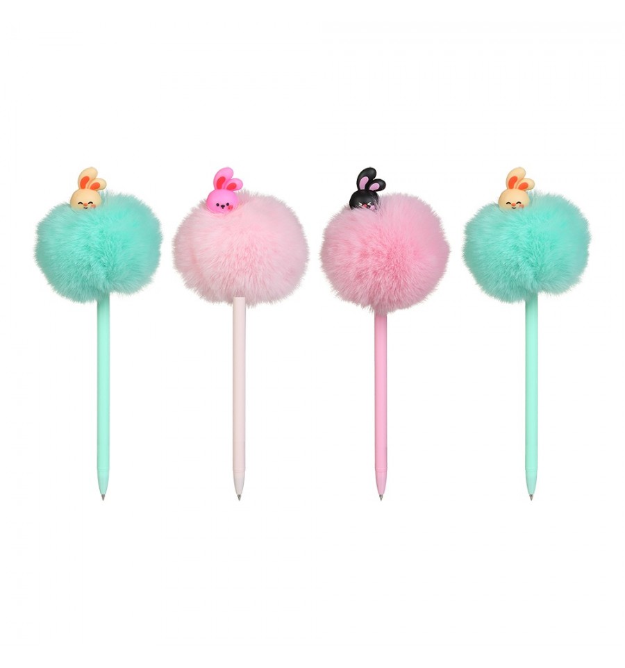 Кулькова ручка з помпоном FLUFFY RABBIT від ZiBi – оригінальний та цікавий подаруночок і інструмент для письма. Дизайнерське рішення у вигляді великого помпону та фігурки-декору тваринки на корпусі, робить ці ручки улюбленцями школярів, студентів, а також творчих і креативних людей для створення святкового настрою, записів, сюрпризів, ігор з використанням інструментів для письма.великий помпон на кінці корпусу діаметром близько 8 см з приємного на дотик пухнастого штучного хутра товщина лінії письма ручки 0.7 мм колір чорнила: синій надійний пишучий вузол, виготовлений за класичною для кулькових ручок технологією кругла форма корпусу невеликого діаметру вентильований ковпачок захищає наконечник ручки, запобігає забрудненню чорнилом предметів навколо та робить використання безпечнішим змінний стрижень завдовшки 131 мм матеріал корпусу: матовий пластик упаковка: картонний шоу-бокс що містить 16 ручок асорті дизайнів
