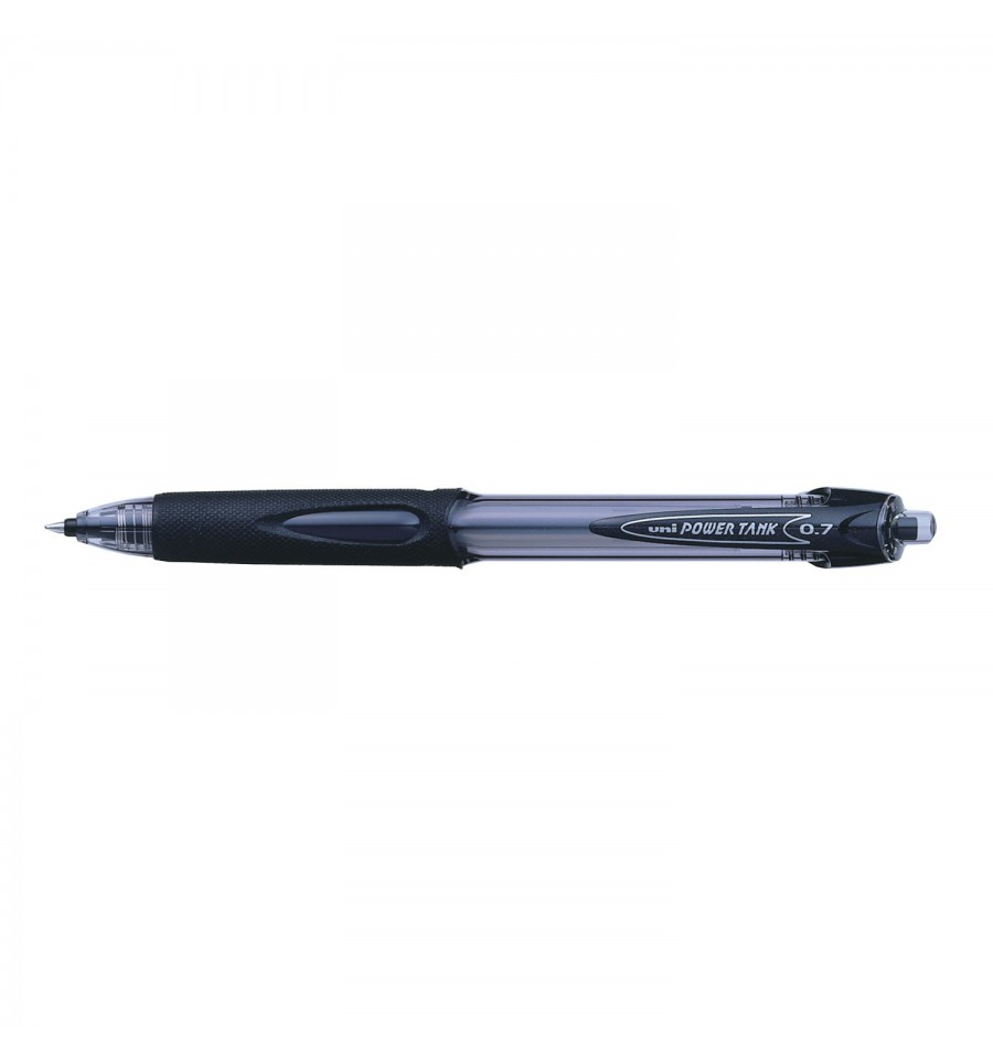 UNI POWER TANK - автоматична кулькова супер ручка, яка не підведе Вас ніколи!!! Завдяки особливій формулі пігментних чорнил на масляній основі UNI Super-Ink (зберігають записи понад 100 років), спеціальному пишучому вузлу і кульці з насічками, UNI Power Tank пише навіть під водою і по ідеально гладких поверхнях. Проливний дощ, розлита вода, мороз нижче -20°С, глянцевий папір ... Пише навіть пишучим вузлом догори! Для POWER TANK не існує ніяких перешкод!Оригінальний практичний дизайн Тонований пластиковий корпус кольору чорнил Гмовий грип Пластиковий кліп Змінний стрижень SNP-7 Тонка лінія письма 0,7 мм. Діаметр кульки пишучого механізму 0,7 мм UNI POWER TANK краще рішення для найекстремальніших професій: поліцейські, військовослужбовці, страхові агенти, лікарі швидкої, експедитори, кур'єри, співробітники спецслужб. POWER TANK - ідеальне письмо в будь-якому положенні і в будь-яких умовах, навіть в найекстремальніших!