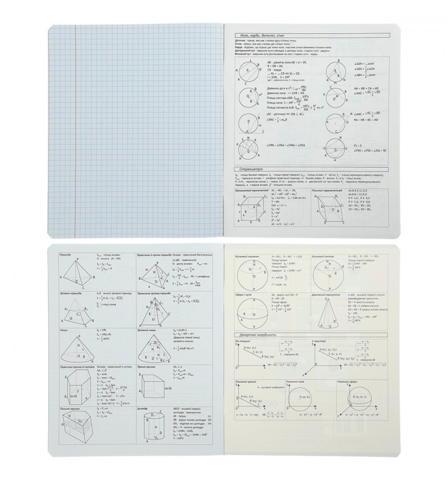 Зошит учнівський шкільний серії "MONOCHROME" з геометрії від Zibi з лаконічним стильним дизайном обкладинки та блоком корисної довідкової інформації чудово підходить для виконання класних та домашніх робіт.36 аркушів розмір виробу 203х167 мм тип скріплення – скоба внутрішній блок: офсетний папір щільністю 55 г/м² білизна паперу 98-100% зошит в клітинку поля червоного кольору заокруглені куточки, що не заминаються обкладинка з целюлозного картону щільністю 190 г/м² з крейдованим шаром, повнокольоровим друком та поліграфічними ефектами: вибірковий УФ лак на внутрішньому боці обкладинки, а також на першому та останньому додатковому аркуші, розміщено довідкову інформацію з предмета (загалом 6 сторінок визначень та формул з геометрії).