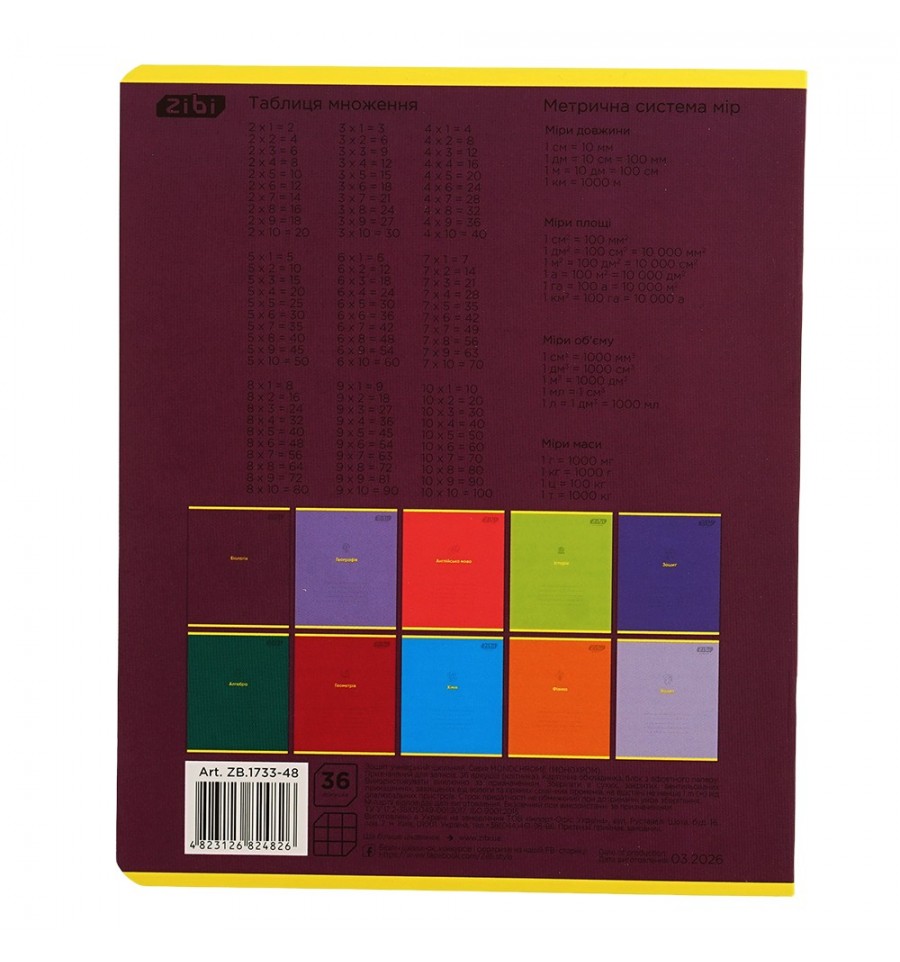 Зошит учнівський шкільний серії "MONOCHROME" з біології від Zibi з лаконічним стильним дизайном обкладинки та блоком корисної довідкової інформації чудово підходить для виконання класних та домашніх робіт.36 аркушів розмір виробу 203х167 мм тип скріплення – скоба внутрішній блок: офсетний папір щільністю 55 г/м² білизна паперу 98-100% зошит в клітинку поля червоного кольору заокруглені куточки, що не заминаються обкладинка з целюлозного картону щільністю 190 г/м² з крейдованим шаром, повнокольоровим друком та поліграфічними ефектами: вибірковий УФ лак на внутрішньому боці обкладинки, а також на першому та останньому додатковому аркуші, розміщено довідкову інформацію з предмета (загалом 6 сторінок визначень та понять з біології).