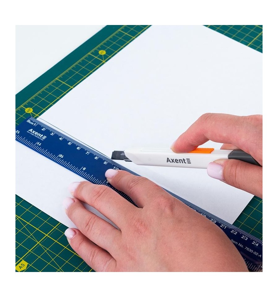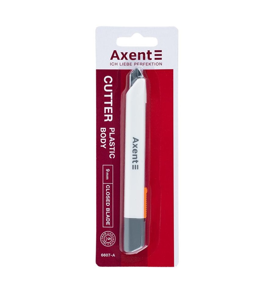Канцелярський ніж Axent 6607-А, 9 мм, з закритим лезом — це нове покоління канцелярських ножів з продуманим захистом леза. Лезо повністю приховане в корпусі, що мінімізує ризик випадкового порізу під час зберігання чи транспортування. Такий підхід робить модель максимально безпечною. Завдяки ширині леза 9 мм, ніж підходить для точного різання паперу, плівки, легкого картону, ниток чи стрічок. Корпус виконаний у сучасному мінімалістичному стилі — гладенький, витончений, білого кольору, що виділяє ніж серед стандартних моделей. Металева направляюча забезпечує плавне ковзання леза без викривлення, а зручна система фіксації гарантує точність і безпечність під час роботи. Компактний, стильний, із вдосконаленим захистом — цей ніж стане у пригоді всім, хто цінує продуману функціональність і сучасний дизайн.Особливості:сталеве багатосекційне лезо шириною 9 мм; металева направляюча; лезо, приховане у корпусі; автоматична фіксація; механізм ступінчастої подачі леза; ергономічний корпус із міцного пластику; стильний сучасний дизайн.