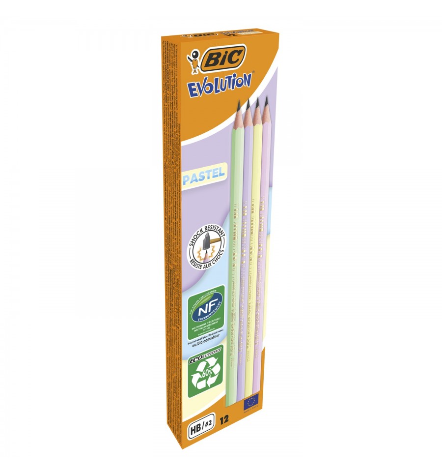 Пастельні графітові олівці BIC Evolution - корпуси чотирьох різних кольорів з гумкою ударостійкий грифель твердість HB упаковка по 12 шт.