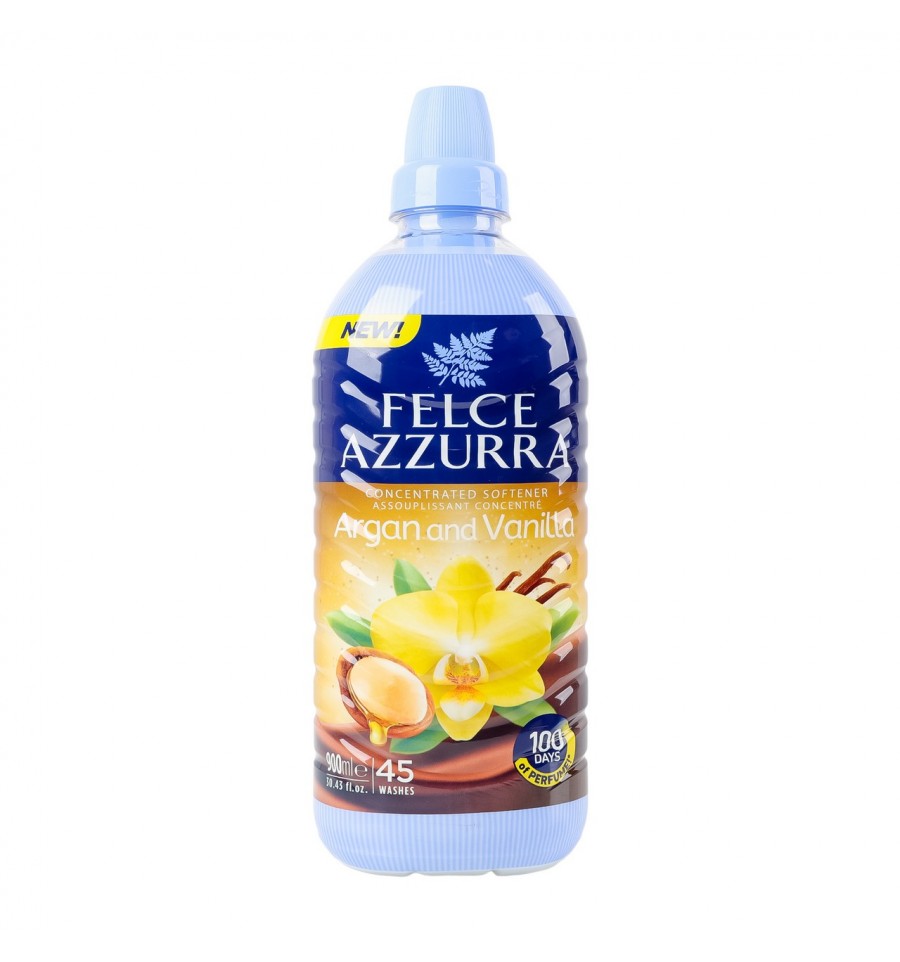 Пом`якшувач для тканин Felce Azzurra Argan and vanilla концентрований 900мл. Склад: менш як 5% катіонні поверхнево-активні речовини, ароматизатори, ексаметилінданопіран, гексил циннамаль, тетраметил ацетилоктагідронафталіни, ліналоол, ацетил цедрен, альфа-ізометил іонон, цитронелол. Рекомендований спосіб приготування/вживання: налити пом`якшувач 20мл (1/2 ковпачка) на 4-5кг білизни в спеціально призначене відділення пральної машини. При відсутності такого відділення варто розчинити вміст однієї кришечки пом`якшувача в 1-2 склянках води і додати до пральної машини при останньому ополіскуванні білизни. На 6-7кг білизни варто збільшити дозування до 40мл (ковпачок). Вистачає на 45 циклів прання. Застереження/міри безпеки: уважно вивчіть інструкцію по догляду за тканиною на виробі. Не для внутрішнього вживання. Зберігати в недоступному для дітей місці. Запобігати потраплянню на шкіру та в очі. У разі потрапляння в очі промити великою кількістю води, звернутися до лікаря і показати упаковку. У разі потрапляння в шлунок відразу звернутися до лікаря і показати упаковку. Термін придатності: 3 роки. Країна виробник: Італія. Виробник та адреса виробника: Paglieri S.p.A., Державна автодорога №10 на Геную 98км, Александрія, Італія, 15122. Імпортер та адреса імпортера: ТОВ «Дистреко», вул. Василя Стуса, 2Б/1, м. Одеса, Хаджибейський р-н, Одеська обл., Україна, 65033. Об`єм: 900мл.
