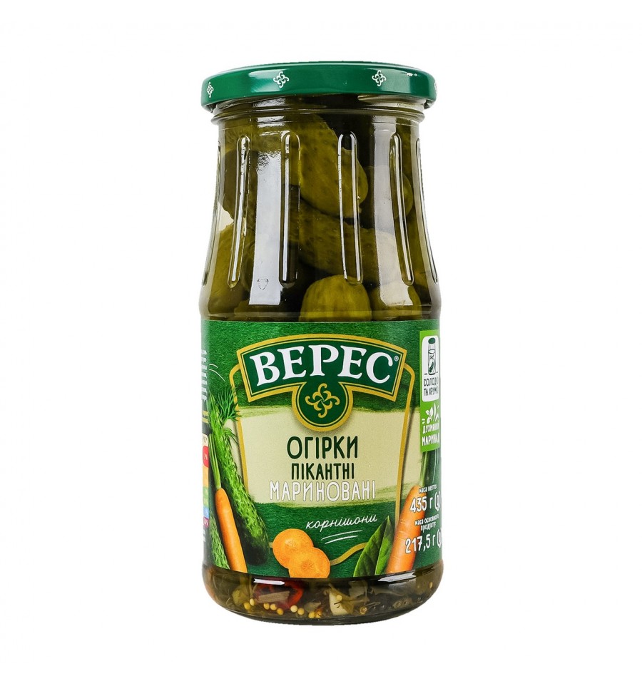 Новий Огірки Верес пікантні мариновані стерилізовані 435г