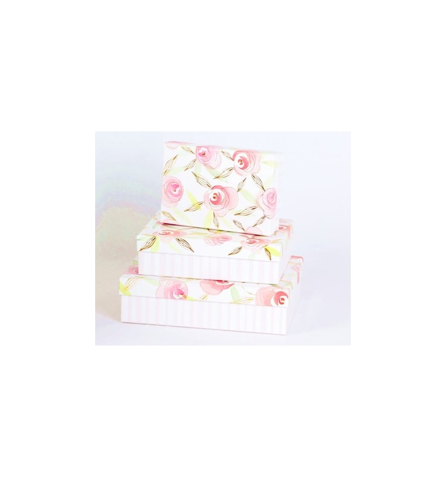 Подарункові коробки від BUROMAX – призначені для упаковування подарунків, сюрпризів, компанування різних предметів в набори. Така упаковка надасть святковості, урочистості, атмосфери та інтриги під час вручення чи дарування та зробить подарунок цілісним і більш привабливим. Упаковка різних подарунків у коробки одного дизайну чи одної серії - це стильно та зі смаком! Такі набори можна використовувати для оформлення інтер'єру до свят та урочистостей.3 коробки в наборі, складаються одна в одну Кришки знімаються Розміри (ШхДхВ): S - 19х13.5х6 см: M - 22х16х6.5 см: L - 24.5х17.5х7 см Міцні, виготовлені з дуже цупкого білого картону (щільність 1200 г/м²), витримують велику вагу та навантаження, не зімнуться та якнайкраще захистять подарунок Зовнішня поверхня - папір з повнокольоровим друком та поліграфічними ефектами: вибіркове тиснення кольоровою фольгою Всі коробки в одному дизайні