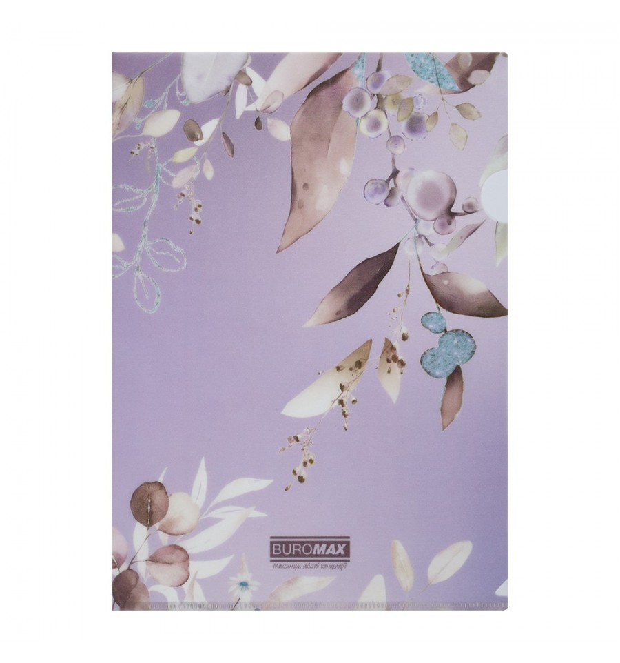 Папка-кутик серії ARABESKI від BUROMAX допоможе акуратно та стильно організувати Ваші ділові папери. Підійде для короткочасного зберігання невеликої кількості документів. Її зручно використовувати для здачі звітності, на нарадах або просто в роботі бухгалтерів, фінансистів, менеджерів, маркетологів та інших співробітників. Папка стане в нагоді співробітникам офісних та бізнес-центрів, фінансових відділів та установ, студентам та школярам, ​​захистить вміст від зминання, намокання або забруднення.для паперів формату А4 (розмір 220х310 мм) матеріал: матовий напівпрозорий пластик товщиною 180 мкм наявність висікання на лицьовій стороні допомагає швидко та зручно витягнути документи з папки місткість: до 40 аркушів виконана в оригінальному квітковому дизайні з блиском, що іскриться на світлі основний колір: сливовий Придбайте інші канцтовари серії ARABESKI, з квітковими та пастельними дизайнами та зберіть власну унікальну колекцію, яка підкреслить Ваш стиль та смак і обов'язково радуватиме погляд!
