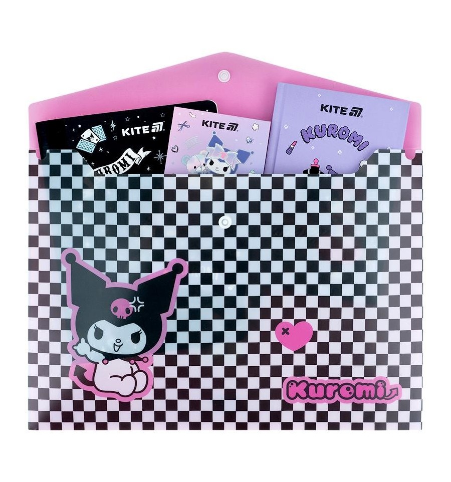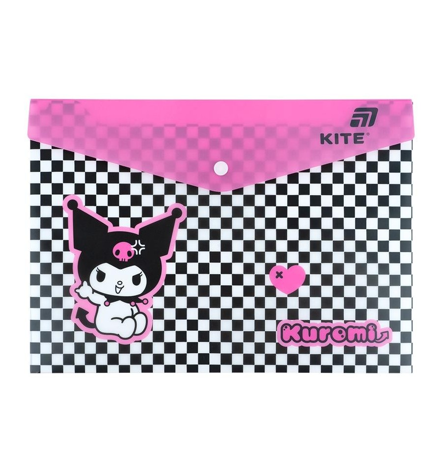 Папка на кнопці Kite HK25-244-2 А4 – ідеальний вибір для школи, роботи чи домашнього архіву. Вона допомагає підтримувати порядок у документах, захищає їх від зминання та випадкових забруднень. Адже для навчання знадобиться ціле море паперів, малюнків та роздруківок.Папка виконана із якісного щільного пластику. Закривається на кнопку та надійно утримує документи всередині.З цією папкою все буде на своєму місці. Вона стане твоїм особистим органайзером, що завжди тримає папери в порядку.Дизайн у ліцензії Kuromi: стильне поєднання грайливості та зухвалості для яскравого самовираження.Збери колекцію канцелярії Kite в улюбленій ліцензії, щоб улюблені герої завжди були поруч.Особливості:щільний пластик 180 мкм – міцний, практичний та приємний на дотик; зручний формат А4 – підходить для рефератів, роздруківок і творчих робіт на альбомних аркушах; зручна застібка-кнопка – утримує всі документи всередині, не відкривається випадково, але легко розстібається, коли це потрібно тобі; ліцензія Kuromi – для натхнення та гарного настрою; блискуче оздоблення: шиммер та фольга.