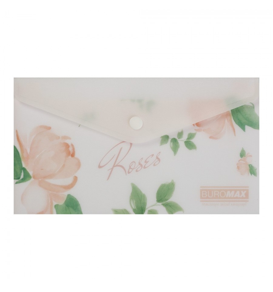 Папка-конверт євроформату DL на кнопці серії ARABESKI від BUROMAX підходить для зберігання і транспортування документів, має зручний формат для подорожей. Папка виконана в стильному квітковому дизайні, що неодмінно буде приваблювати і надихати! Папка найкраще стане в нагоді співробітникам туристичних та рекламних агенцій та компаній, гідам та маркетологам, та багатоьм іншим споживачам, захистить вміст від зминання, намокання чи забруднення.для паперів формату DL (розмір 225х125 мм) матеріал: матовий напівпрозорий пластик товщиною 180 мкм закривається клапаном за допомогою пластикової кнопки, що забезпечує надійне збереження паперів та легкий доступ до них може використовуватися як пенал, для зберігання дрібного канцелярського приладдя основний колір: кораловий Придбайте інші канцтовари серії ARABESKI, з квітковими та пастельними дизайнами і зберіть власну унікальну колекцію, яка неодмінно підкреслить Ваш стиль та смак і обов'язково буде радувати погляд!