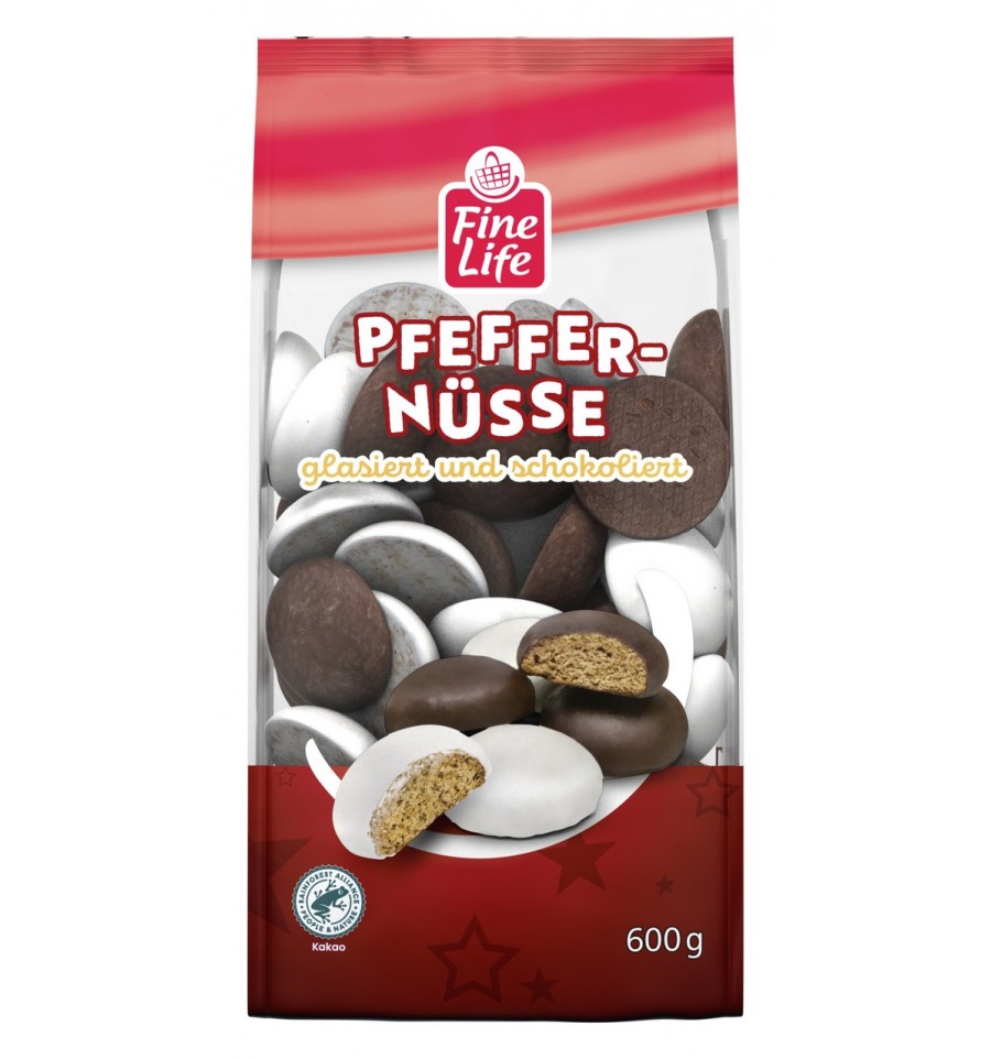 Fine Life Gingerbread iced and coated with chocolate - chocolate coated gingerbread with 20% chocolate. Асорті пряників, глазурованих цукровою глазур’ю та темним шоколадом (20%) ТМ “Fine Life”. Склад: борошно пшеничне, глюкозно-фруктозний сироп, цукор, какао терте, прянощі, кориця, какао-масло, картопляний крохмаль, розпушувачі: карбонати калію, дифосфати, карбонати натрію, карбонати амонію; карамелізований цукровий сироп, желатин (свинячий), емульгатор: соєвий лецитин; кислота: молочна кислота. Продукт може містити сліди горіхів, арахісу, яєць, люпину та кунжуту. Поживна цінність на 100 г продукту: енергетична цінність - 1532 кДж, 362 ккал; жири - 3,9 г, з них насичені - 2,5 г; вуглеводи - 74 г, з них цукри - 39 г; білки - 5,7 г; сіль - 0,16 г. Дата “Краще спожити до” та номер партії: зазначено на пакованні. Умови зберігання: зберігати в сухому прохолодному місці, захищеному від прямих сонячних променів. Країна походження: Німеччина. Імпортер: ТОВ «Метро Кеш енд Кері Україна», просп. П. Григоренка, 43, м. Київ, 02140, Україна. З питань щодо продукту звертайтеся за телефоном імпортера: 0 800 501 401 (безкоштовно в межах України). Маса нетто: 600 г.