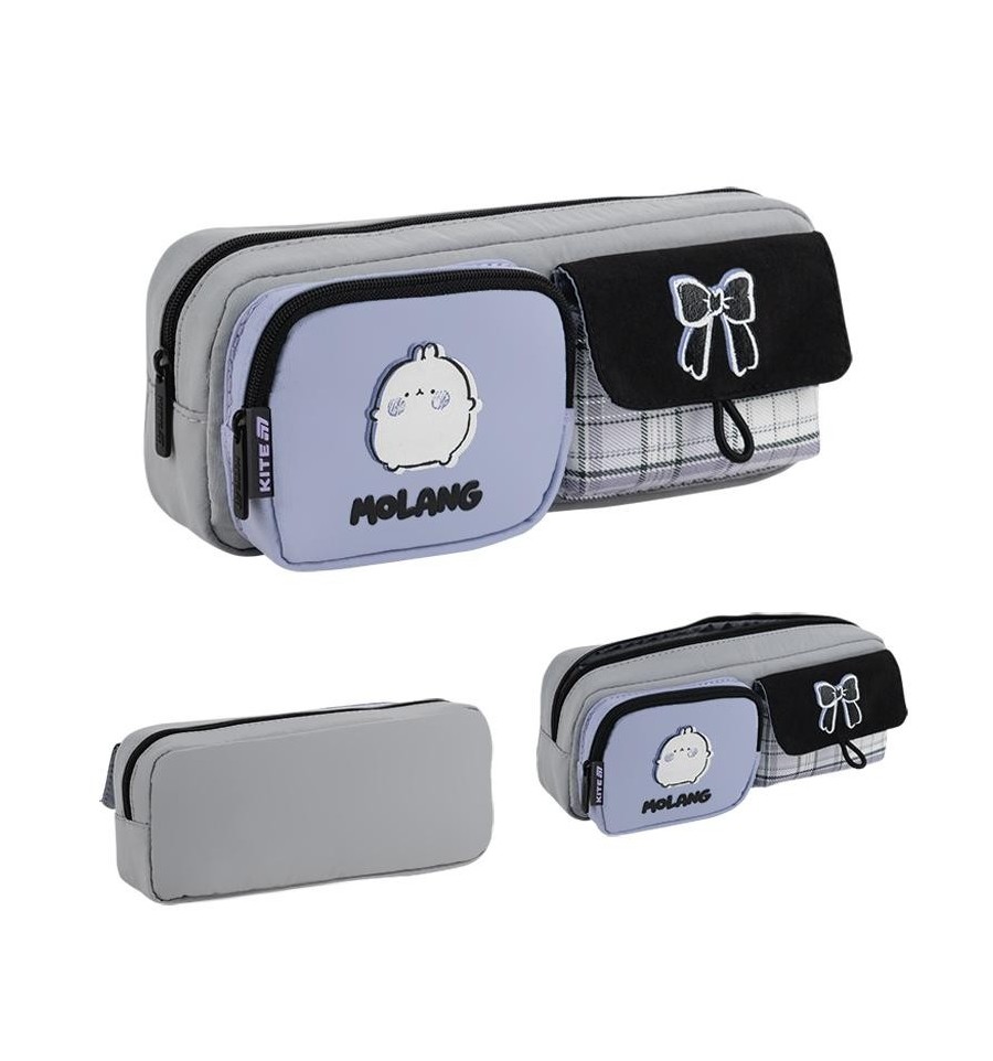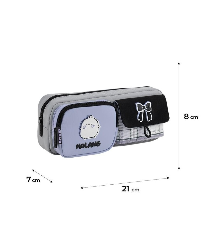 Шкільний пенал Kite ML26-2701 – зручна та стильна модель, з якою шкільні будні стануть ще яскравішими та продуктивнішими.Пенал втілює у собі новітні модні тенденції, дарує естетичну насолоду та підкреслює унікальний стиль власника. Об’ємні зовнішні кишені додають моделі особливої практичності. Впорядкований простір дозволяє зручно розмістити письмове приладдя та канцелярські дрібнички.Еталонна якість – гарантія довгої служби. Тканина не тьмяніє, застібки плавно працюють. Пенали Kite готові до насиченого шкільного графіку, прекрасно справляються з частими відкриттями-закриттями на кожному уроці.Ліцензія Molang – символ дружби, турботи та радості. Його м’який характер і щирість надихають учнів бути уважними до інших, підтримувати друзів та залишатися позитивними.Бренд Kite – визнаний лідер у світі рюкзаків та шкільних аксесуарів, який щороку отримує найпрестижніші нагороди: Вибір року, Вибір країни, Українська народна премія. Споживачі та експерти ринку обирають Kite за бездоганну якість, стиль, інноваційні рішення та ергономічний дизайн.Особливості:1 просторе відділення на блискавці; 2 зовнішні кишені: на блискавці та на липучці; міцні матеріали та надійна фурнітура; усередині – міцна підкладка; оригінальна форма та трендовий дизайн в ліцензії Molang. декор: пенал виконаний із поліестеру з жатим ефектом; об'ємний друк.