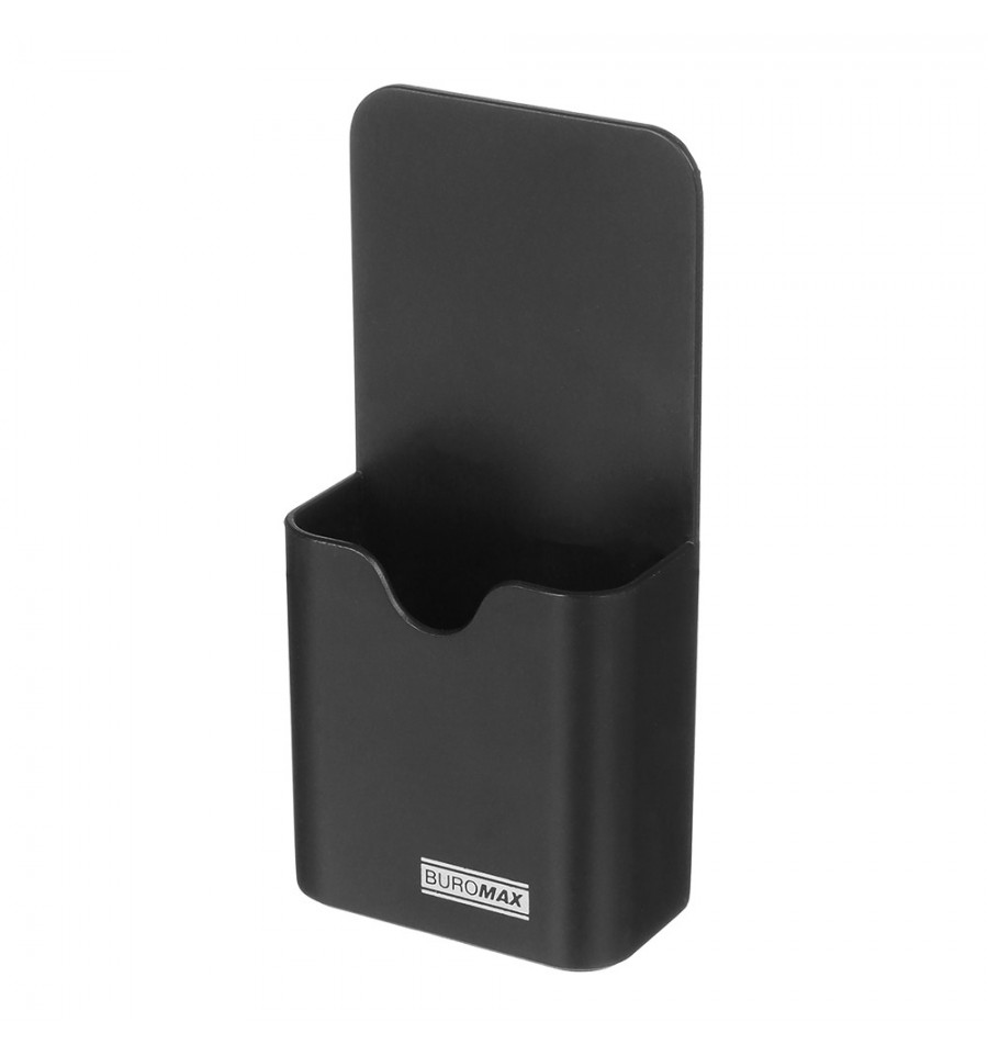 Магнітний тримач для маркерів від BUROMAX – функціональна підставка, що допоможе зберігати маркери безпосередньо на робочій поверхні. Така підставка може кріпитися на магнітно-маркерних дошках та фліпчартах в офісах та конференц-залах, в навчальних закладах, а також в побуті, на звичайному холодильнику. Для демонстраційного обладнання, що не має вмонтованої полички, або вона дуже маленька наш тримач беззаперечно стане в нагоді. Строгий чорний колір та невеликий розмір не заважатимуть демонстрації та сприйняттю інформації, але пишучий інструмент буде завжди під рукою і не загубиться!розмір тримача 120х57 мм має одне відділення розміром 55х55х22 мм (ВхШхГ), розрахований на 3-4 маркери (залежно від товщини), як альтернатива – може вмістити невелику губку для дошки має висічку для пальця для більш зручного виймання маркерів з тильної сторони тримача на всю його поверхню прикріплений великий магніт, який надійно зафіксує тримач - він не буде ковзати і не впаде виготовлений з міцного матового чорного пластику упаковка: пластиковий блістер з підвісом