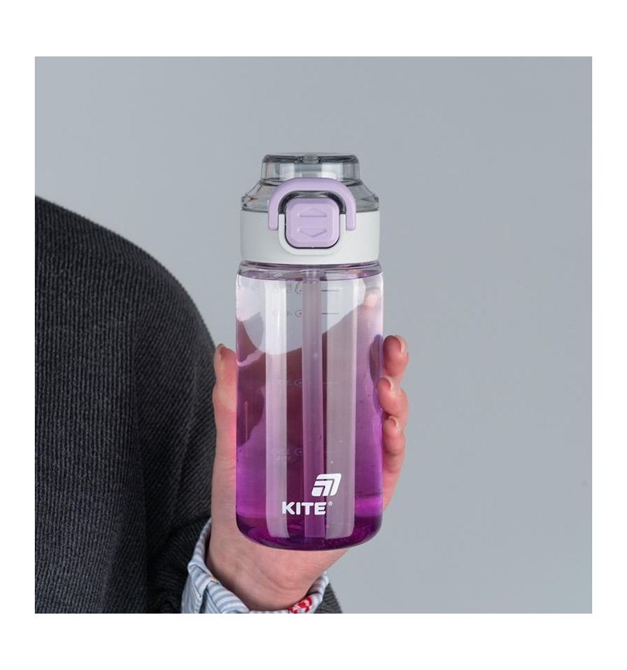 Пляшечка для води Kite K25-1212-3 об’ємом 600 мл — ідеальний варіант для школи, тренувань і прогулянок. Виготовлена з тритану — легкого, міцного та безпечного матеріалу, який не містить бісфенолу-А, не змінює смак напою і не вбирає запахи. Завдяки стильному дизайну з градієнтним переходом кольору та матовою кришкою ця пляшка виглядає сучасно та стильно.Пляшечка має два зручних варіанти пиття: через поїльник, або через трубочку, завдяки якій зручно пити навіть на ходу. Кришка надійно фіксується, тож не відкриється випадково: герметичність зберігається навіть під час активного руху. Широке горлечко зручне для миття. Пляшка легко поміщається у бокову кишеню рюкзака та приємно лежить у руці — усе продумано для щоденного комфорту.Особливості:матеріал тритан — безпечний, міцний, не вбирає запахи; об’єм 600 мл — зручно носити з собою; герметична кришка з фіксуючою кнопкою — захист від випадкового відкриття; широке горлечко — зручно мити; два варіанти пиття: поїльник та силіконова трубочка — зручно пити на ходу; мірна шкала — для відслідковування кількості випитої води; пластикова ручка — для комфортного перенесення; компактна форма — вміщується у рюкзак або підстаканник; сучасний дизайн — стильний та актуальний.