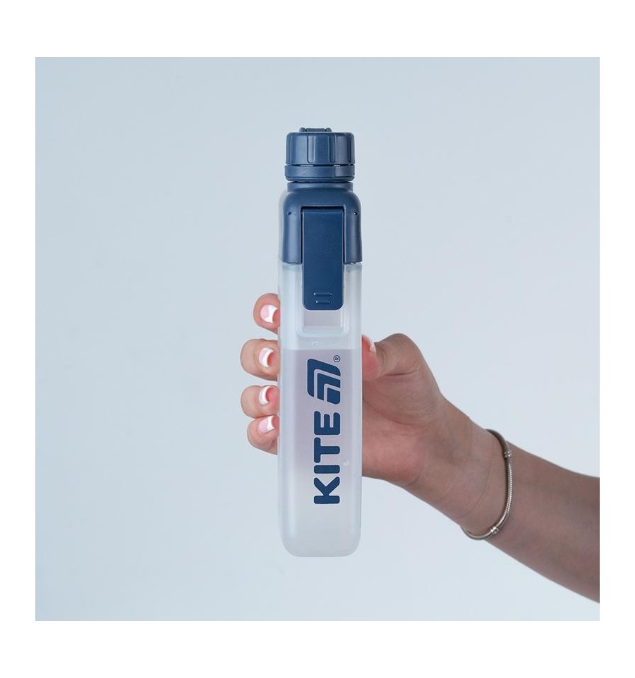 Пляшка для води Kite K25-1239-1 – компактна, зручна, продумана до дрібниць.Її ергономічна форма добре лягає в руку, а лаконічний дизайн з матовим корпусом виглядає стильно та сучасно. Об’єм 450 мл — оптимальний для щоденного використання: на прогулянці, на заняттях чи просто в рюкзаку на кожен день.Пляшка виготовлена з якісного харчового пластику, безпечного для здоров’я. Підходить для напоїв до 50°C. Надійна гвинтова кришка щільно закручується та запобігає протіканню.Верхня частина пляшки закріплена на зручних засувках: її легко відкрити для наповнення або миття, що забезпечує гігієнічність і комфорт у догляді.Особливості:компактний об’єм 450 мл — легко носити щодня; якісний та безпечний харчовий пластик; підходить для напоїв температурою до 50°C; герметична гвинтова кришка, яка надійно закручується; верх на засувках щоб зручно було відкрити і помити; лаконічний дизайн, який пасує до будь-якого стилю.