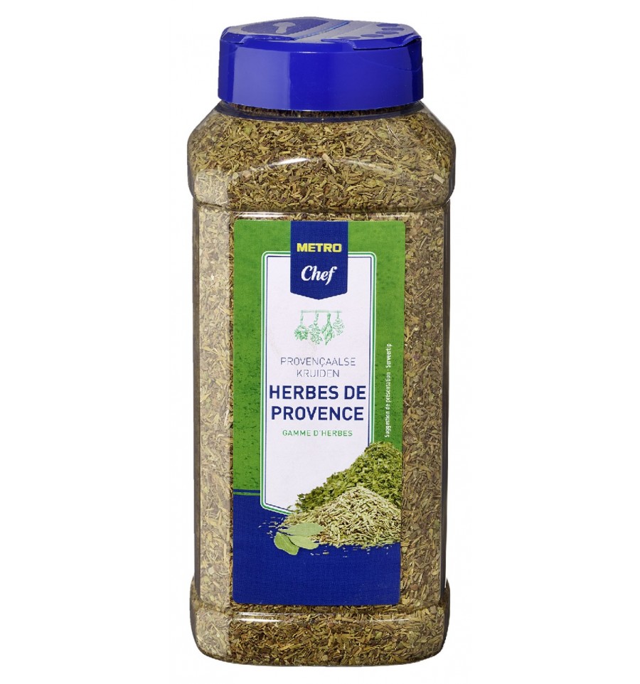 Суміш трав. ТМ "METRO Chef". Склад: розмарин, базилік, майоран. Може містити сліди зернових культур, що містять глютен, яєць, сої, селери, кунжуту, молока (лактози) та гірчиці. Енергетична цінність: 1166 кДж/281 ккал. Жири: 5,7 г, з них насичені: 1,2 г, Вуглеводи: 25 г, з них цукри: 3,4 г, Білки: 10 г, Сіль: 0,14 г. Продукт застосовується у вигляді приправи для приготування страв у кількості відповідно до рецептів. Зберігати в сухому та захищеному від прямих сонячних променів місці. Країна походження основних інгредієнтів відрізняється від країни походження харчового продукту. Виробник: Kotányi GmbH, Австрія, А-2120, Волькерсдорф, а/с 66. Імпортер: ТОВ "Метро Кеш енд Кері Україна", 02140, Україна, м. Київ, Проспект П. Григоренка, 43. З питань щодо продукту звертайтесь за тел. гарячої лінії імпортера 0800501401 (безкоштовно в межах України). Вага нетто: 180 г.