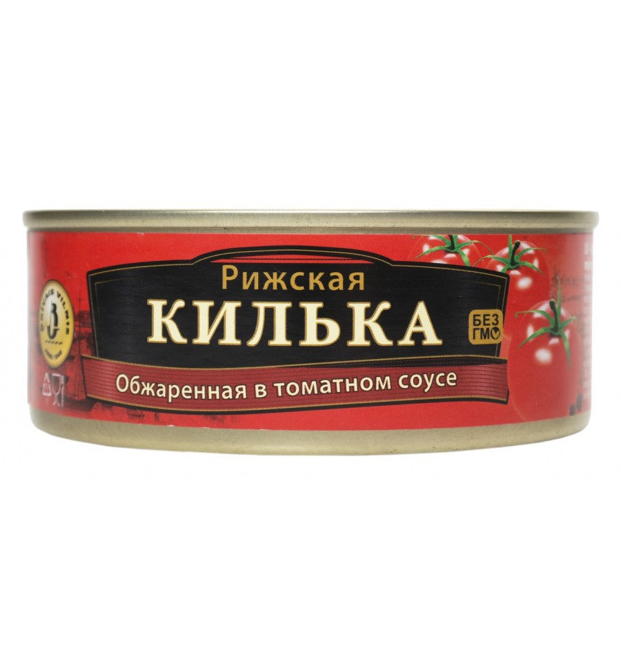 Килька Brivais Vilnis ризька обсмажена у томатному соусі 240г. Склад: кілька обсмажена (70%), томатний соус (30%) (вода, томатна паста, олія рослинна, сіль харчова, цукор, цибуля сушена, регулятор кислотності - оцтова кислота, прянощі: перець чорний, духмяний перець, лавровий лист, коріандр, гвоздика), борошно пшеничне. Калорійність в 100г продукту: 148 ккал. Харчова (поживна) цінність у 100г продукту: Білки - 8.5г., Жири - 9.6г., Вуглеводи - 6.9г. Виробник: Брівайс Вілніс. Країна виробництва: Латвія. Адреса виробничих потужностей: ЛВ-4033, вул. Остас, 1, Салацгріва, Салацгрівський край, Латвія. Імпортери: ТОВ Юніон Траст. Вміст ГМО: Не містить вказаної речовини. Маса нетто: 240 г