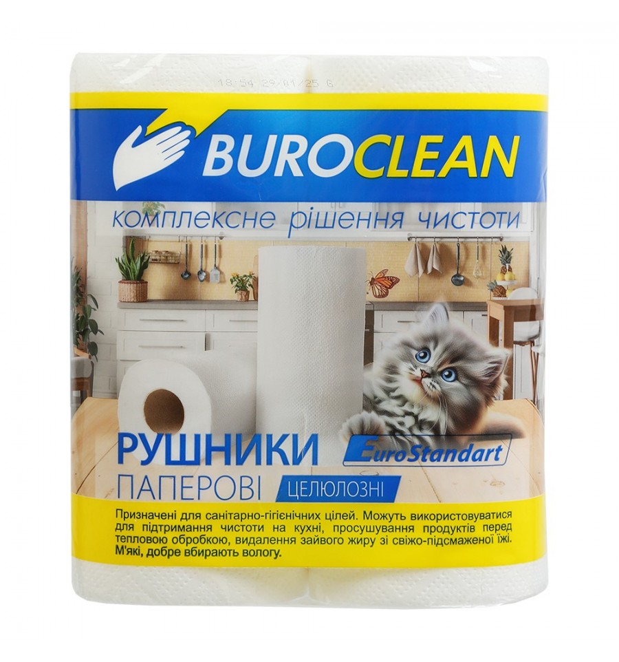 Паперові рушники від BUROCLEAN можна використовувати для підтримки гігієни рук та обличчя в офісі, у закладах готельного та ресторанного господарства, на виробництві та в побуті. Також їх зручно використовувати на природі, пікніках, на фуршетах. Такі рушники неодмінно стануть у нагоді на різних майстер-класах, пов'язаних з використанням фарб, глини, пластиліну, клею.2 рулони в упаковці 100% целюлоза колір білий 50 відривів у рулоні 2-шарові розмір аркуша 220х230 мм м'які, добре поглинають вологу забезпечують ніжний догляд за шкірою зручні у використанні: наявність перфорації забезпечує легкий та рівний відрив підходять для диспенсерів рулон на втулці діаметром 5 см діаметр рулону 11,5 см упаковка: термоспаяний пакет