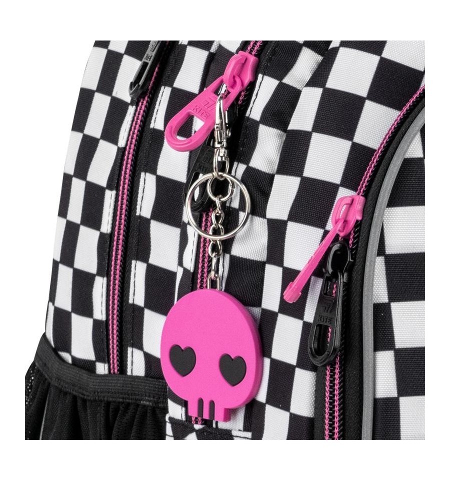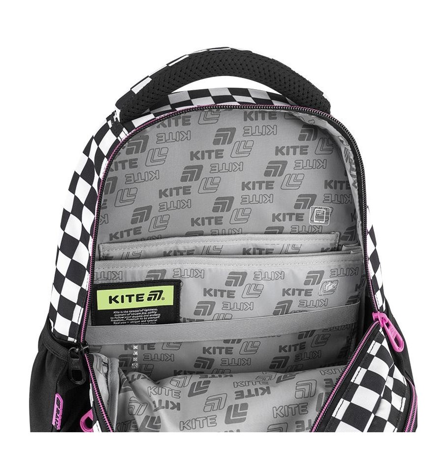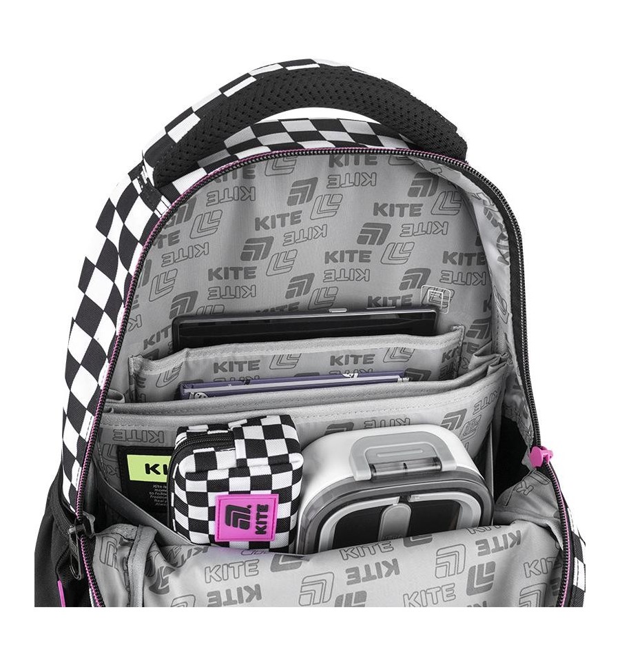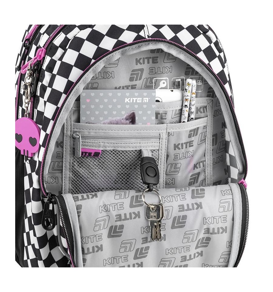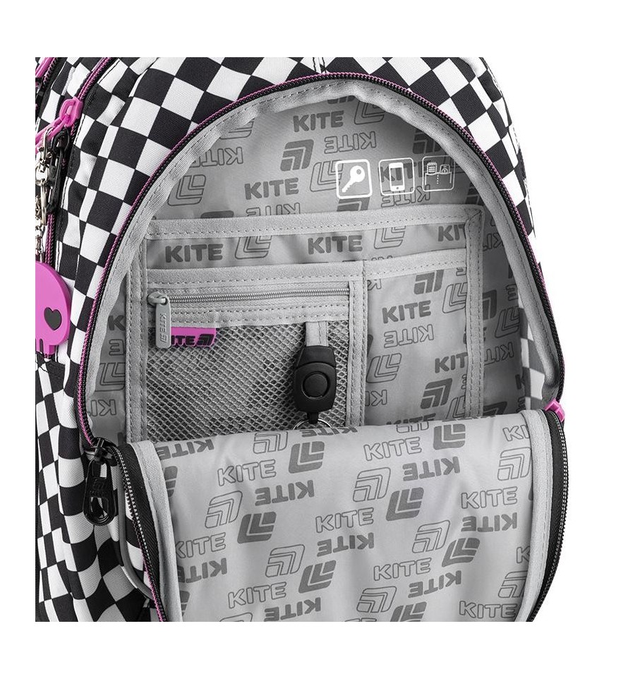 Рюкзак Kite HK25-8001M – рюкзак незамінний для школи, екскурсій, поїздок, прогулянок та дозвілля. Завдяки безлічі зручних відділень та кишеньок, кожна річ буде на своєму місці. Ортопедична конструкція подбає про комфорт та здоров'я спини. Продумана організація внутрішнього простору, приголомшлива місткість та трендовий дизайн. Втілення комфорту та бездоганної європейської якості.Модель рекомендована для підлітків від 9-12 років, зростом від 130 см. Подарунок до рюкзака – модний шнурок для телефону.Ефектний дизайн в трендовій ліцензії Kuromi – щоб бути наймоднішою в усій школі. Ходити в школу разом з улюбленими персонажами та транслювати свої уподобання – те, що так люблять школярі!Бренд Kite — визнаний лідер у світі рюкзаків, який щороку отримує найпрестижніші нагороди: Вибір року, Вибір країни, Українська народна премія. Споживачі та експерти ринку обирають Kite за бездоганну якість, стиль, інноваційні рішення та ергономічний дизайн.Рюкзак зовні: запатентована ортопедична спинка Ergo Teens з м'якими дихаючими подушечками – розроблена спеціально для підлітків середнього і старшого шкільного віку. Повторює природні вигини хребта, щільно прилягає і знижує навантаження на спину; широкі вентильовані лямки S-подібної форми м'яко лягають на плечі, не тиснуть і не натирають; знімний нагрудний ремінь фіксує лямки в зручному положенні, бере участь в правильному рівномірному розподілі ваги; велика передня кишеня, всередині якої розташований органайзер для канцелярських дрібниць, знімна ключниця і кишеня для телефону з плюшем, який захищає екран; 2 бічні кишені з сіточкою на резинці, в яких зручно розміщувати пляшечку з водою або невеликий термос; м'яка ущільнена ручка-переноска з EVA всередині; текстильна петля для підвішування рюкзака на гачок; посилене дно для практичності та стійкості; високоякісна фурнітура – надійні блискавки з масивними пуллерами працюють плавно; світловідбивні елементи – щоб дитина була помітною на дорозі в темну пору доби; декор: об'ємна вишивка, нашивка, гумовий брелок-підвіска з металевим карабіном. Рюкзак всередині: 2 просторих основних відділення; зручні роздільники для книг та зошитів; кишеня для планшета з плюшем для захисту екрану; міцна брендована підкладка; іконки внутрішньої навігації, які підказують призначення кожної кишеньки. Матеріали і фурнітура пройшли випробування на міцність і стійкість до зношування. Тканина не вигорає та довго зберігає первинний вигляд. Блискавки – якісні та надійні, працюють плавно.