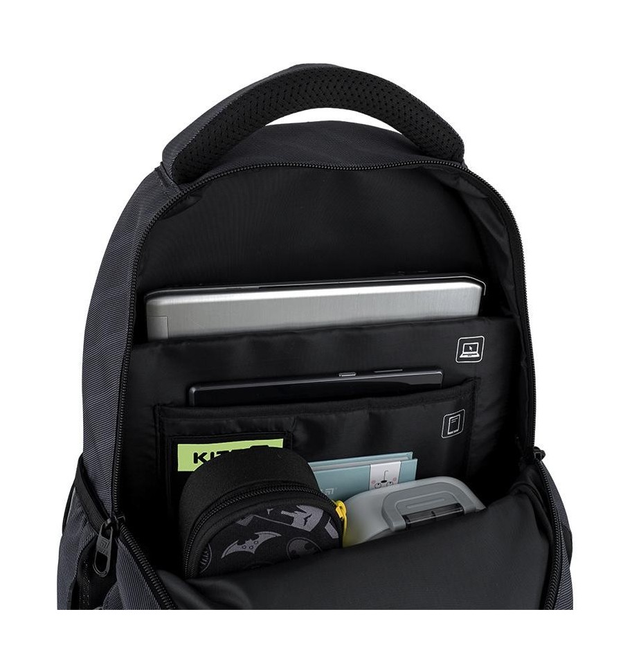 Рюкзак Kite DC25-8001L – рюкзак незамінний для школи та університету, екскурсій та поїздок, прогулянок та дозвілля. Завдяки безлічі зручних відділень та кишеньок, кожна річ буде на своєму місці. Ортопедична конструкція подбає про комфорт та здоров'я спини.Продумана організація внутрішнього простору, приголомшлива місткість та трендовий дизайн. Втілення комфорту та бездоганної європейської якості.Модель рекомендована для підлітків від 12 років та дорослих, зростом від 145 см.Подарунок до рюкзака – модний шнурок для телефону.Герої всесвіту DC перетворюють рюкзак на справжній символ сили та натхнення.Бренд Kite — визнаний лідер у світі рюкзаків, який щороку отримує найпрестижніші нагороди: Вибір року, Вибір країни, Українська народна премія. Споживачі та експерти ринку обирають Kite за бездоганну якість, стиль, інноваційні рішення та ергономічний дизайн.Рюкзак зовні: запатентована ортопедична спинка Ergo Teens з м'якими дихаючими подушечками – розроблена спеціально для підлітків середнього і старшого шкільного віку. Повторює природні вигини хребта, щільно прилягає і знижує навантаження на спину; широкі вентильовані лямки S-подібної форми м'яко лягають на плечі, не тиснуть і не натирають; знімний нагрудний ремінь фіксує лямки в зручному положенні, бере участь в правильному рівномірному розподілі ваги; велика передня кишеня, всередині якої розташований органайзер для канцелярських дрібниць, знімна ключниця і кишеня для телефону з плюшем, який захищає екран; 2 бокові кишені з сіточкою на гумці, в яких зручно розміщувати пляшечку з водою або невеликий термос; м'яка ущільнена ручка-переноска з EVA всередині; текстильна петля для підвішування рюкзака на гачок; посилене дно для практичності та стійкості; високоякісна фурнітура – надійні блискавки з масивними пуллерами працюють плавно; світловідбивні елементи – щоб дитина була помітною на дорозі в темну пору доби; декор: металізований друк, брелок-підвіска з тасьми з металевим карабіном. Рюкзак всередині: 2 просторих основних відділення; кишеня для ноутбука; кишеня для планшета з плюшем для захисту екрану; міцна та надійна підкладка; іконки внутрішньої навігації, підказують призначення кожної кишеньки. Матеріали і фурнітура пройшли випробування на міцність і стійкість до зношування. Тканина не вигорає та довго зберігає первинний вигляд. Блискавки – якісні та надійні, працюють плавно.
