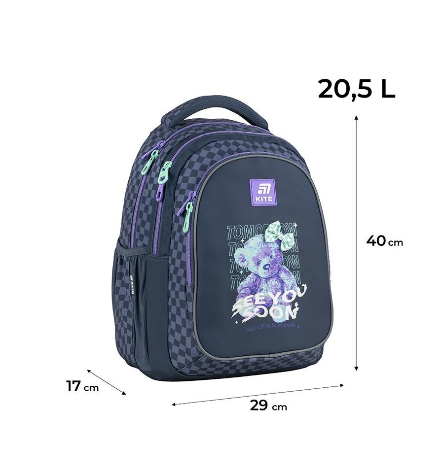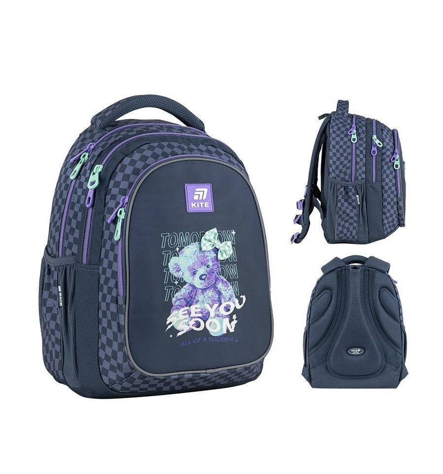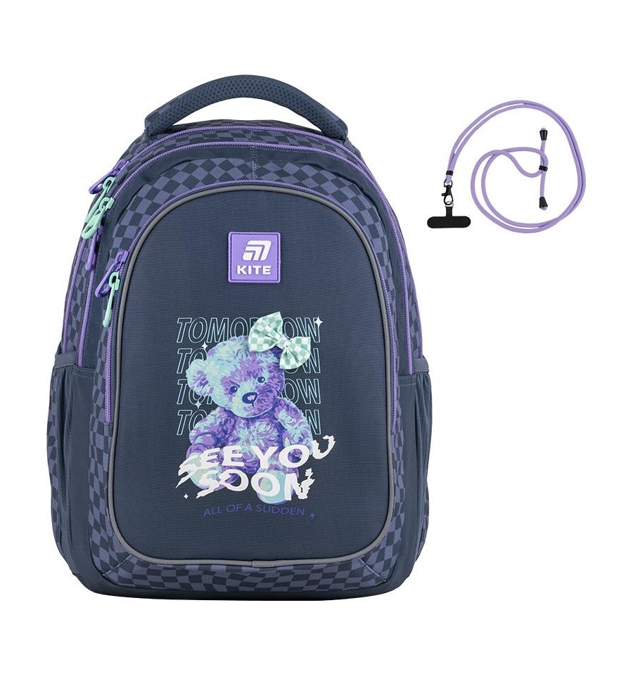 Рюкзак Kite K25-8001M-3 – рюкзак незамінний для школи, екскурсій, поїздок, прогулянок та дозвілля. Завдяки безлічі зручних відділень та кишеньок, кожна річ буде на своєму місці. Ортопедична конструкція подбає про комфорт та здоров'я спини. Продумана організація внутрішнього простору, приголомшлива місткість та трендовий дизайн. Втілення комфорту та бездоганної європейської якості.Модель рекомендована для підлітків від 9-12 років, зростом від 130 см. Подарунок до рюкзака – модний шнурок для телефону.Модний дизайн, що підкреслює індивідуальність і відповідає сучасним трендам – те, що так подобається школярам!Бренд Kite — визнаний лідер у світі рюкзаків, який щороку отримує найпрестижніші нагороди: Вибір року, Вибір країни, Українська народна премія. Споживачі та експерти ринку обирають Kite за бездоганну якість, стиль, інноваційні рішення та ергономічний дизайн.Рюкзак зовні: запатентована ортопедична спинка Ergo Teens з м'якими дихаючими подушечками – розроблена спеціально для підлітків середнього і старшого шкільного віку. Повторює природні вигини хребта, щільно прилягає і знижує навантаження на спину; широкі вентильовані лямки S-подібної форми м'яко лягають на плечі, не тиснуть і не натирають; знімний нагрудний ремінь фіксує лямки в зручному положенні, бере участь в правильному рівномірному розподілі ваги; велика передня кишеня, всередині якої розташований органайзер для канцелярських дрібниць, знімна ключниця і кишеня для телефону з плюшем, який захищає екран; 2 бічні кишені з сіточкою на резинці, в яких зручно розміщувати пляшечку з водою або невеликий термос; м'яка ущільнена ручка-переноска з EVA всередині; текстильна петля для підвішування рюкзака на гачок; посилене дно для практичності та стійкості; високоякісна фурнітура – надійні блискавки з масивними пуллерами працюють плавно; світловідбивні елементи – щоб дитина була помітною на дорозі в темну пору доби; декор: об'ємний друк, світловідбивний друк, брелок-підвіска з паракорду. Рюкзак всередині: 2 просторих основних відділення; зручні роздільники для книг та зошитів; кишеня для планшета з плюшем для захисту екрану; міцна брендована підкладка; іконки внутрішньої навігації, які підказують призначення кожної кишеньки. Матеріали і фурнітура пройшли випробування на міцність і стійкість до зношування. Тканина не вигорає та довго зберігає первинний вигляд. Блискавки – якісні та надійні, працюють плавно.
