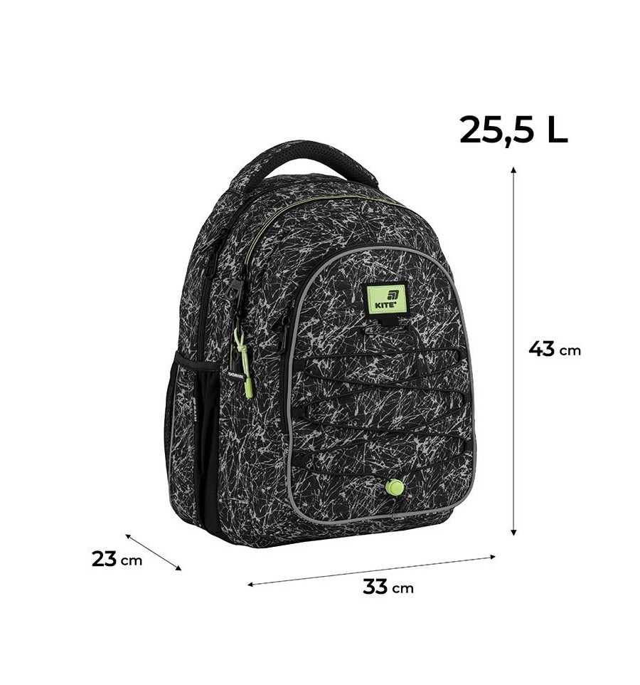 Рюкзак Kite K25-8001L-1– рюкзак незамінний для школи та університету, екскурсій та поїздок, прогулянок та дозвілля. Завдяки безлічі зручних відділень та кишеньок, кожна річ буде на своєму місці. Ортопедична конструкція подбає про комфорт та здоров'я спини.Продумана організація внутрішнього простору, приголомшлива місткість та трендовий дизайн. Втілення комфорту та бездоганної європейської якості.Модель рекомендована для підлітків від 12 років та дорослих, зростом від 145 см.Подарунок до рюкзака – модний шнурок для телефону.Динамічний дизайн, що відображає сміливий молодіжний дух і бажання бути в тренді.Бренд Kite — визнаний лідер у світі рюкзаків, який щороку отримує найпрестижніші нагороди: Вибір року, Вибір країни, Українська народна премія. Споживачі та експерти ринку обирають Kite за бездоганну якість, стиль, інноваційні рішення та ергономічний дизайн.Рюкзак зовні: запатентована ортопедична спинка Ergo Teens з м'якими дихаючими подушечками – розроблена спеціально для підлітків середнього і старшого шкільного віку. Повторює природні вигини хребта, щільно прилягає і знижує навантаження на спину; широкі вентильовані лямки S-подібної форми м'яко лягають на плечі, не тиснуть і не натирають; знімний нагрудний ремінь фіксує лямки в зручному положенні, бере участь в правильному рівномірному розподілі ваги; велика передня кишеня, всередині якої розташований органайзер для канцелярських дрібниць, знімна ключниця і кишеня для телефону з плюшем, який захищає екран; 2 бокові кишені з сіточкою на гумці, в яких зручно розміщувати пляшечку з водою або невеликий термос; м'яка ущільнена ручка-переноска з EVA всередині; текстильна петля для підвішування рюкзака на гачок; посилене дно для практичності та стійкості; високоякісна фурнітура – надійні блискавки з масивними пуллерами працюють плавно; світловідбивні елементи – щоб дитина була помітною на дорозі в темну пору доби; декор: аплікація з комбінованих матеріалів, декоративна шнурівка, брелок-підвіска з комбінованих матеріалів. Рюкзак всередині: 2 просторих основних відділення; кишеня для ноутбука; кишеня для планшета з плюшем для захисту екрану; міцна брендована підкладка; іконки внутрішньої навігації, підказують призначення кожної кишеньки. Матеріали і фурнітура пройшли випробування на міцність і стійкість до зношування. Тканина не вигорає та довго зберігає первинний вигляд. Блискавки – якісні та надійні, працюють плавно.