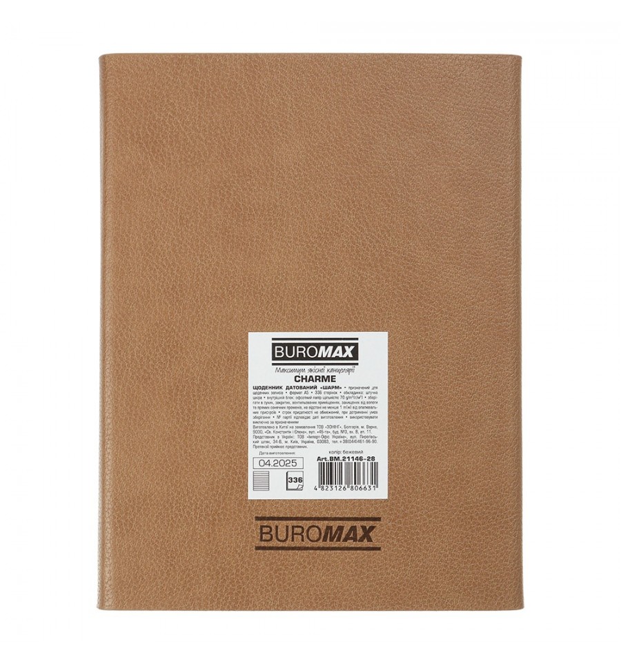 Новий Щоденник датов. 2026 CHARME BM.21146-28, A5, бежевий, штуч.шкіра