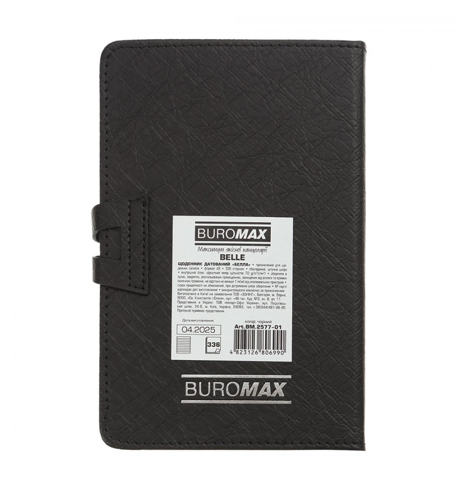 Щоденники BUROMAX - це завжди широкий вибір самих різних обкладинок, фактур, розмірів і кольорів. Ми знайдемо підхід до серця кожного покупця!Жорстка обкладинка з фактурної штучної шкіри щоденника BELLE виконана у розкішному стилі. Оригінальності та функціональності щоденнику додає застібка-хлястик, що фіксує щоденник у закритому положенні, а також декоративний шов по периметру та впоперек обкладинки. Акцент у дизайні створюють тиснення року срібною фольгою та тонований сріблом зріз внутрішнього блоку.Формат А6 336 сторінок Внутрішній блок: офсетний папір кремового кольору щільністю 70 г/м² Закладка-лясе в колір обкладинки Перфоровані куточки аркушів Друк блоку в 2 кольори: сірий і бордовий Дві мови блоку: українська, англійська Форзаци чорного кольору Індивідуальна упаковка: картонна коробка Структура внутрішнього блоку:Сторінка для внесення особистої інформації Календарі на 2025 - 2028 роки Планінг на 2026 рік Інформаційно-довідковий блок: національні, релігійні, професійні свята та пам'ятні дати, знаки зодіаку, телефонні коди мобільних операторів та обласних центрів України, літерні автомобільні коди країн, таблиця відстаней між обласними центрами України, довідник систем вимірювання, міжнародні знаки відповідності, знаки догляду за одягом Датована сторінка на кожен день року з організатором часу від 7:00 до 21:00, календарем на поточний/наступний місяць, позначенням дня тижня, знаку зодіаку, іменинників Алфавітна книга для внесення контактів Щоденник BUROMAX - незамінний помічник в плануванні Вашого робочого дня, перевірений часом!