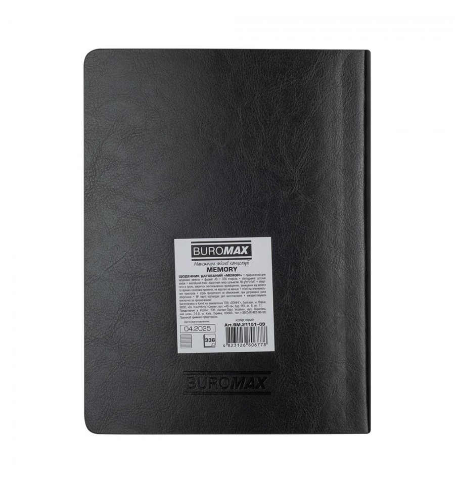 Щоденники BUROMAX - це завжди широкий вибір самих різних обкладинок, фактур, розмірів і кольорів. Ми знайдемо підхід до серця кожного покупця!Гнучка обкладинка з гладкої штучної шкіри щоденника MEMORY має 3D напис на лицьовій стороні, зроблений контрастним золотим кольором. Гармонійно доповнює дизайн тонований в колір обкладинки зріз внутрішнього блоку.Формат А5 336 сторінок Внутрішній блок: офсетний папір кремового кольору щільністю 70 г/м² Закладка-лясе в колір обкладинки Перфоровані куточки аркушів Друк блоку в 2 кольори: сірий і бордовий Дві мови блоку: українська, англійська Мапи України та Європи на форзацах Індивідуальна упаковка: картонна коробка Структура внутрішнього блоку:Сторінка для внесення особистої інформації Календарі на 2025 - 2028 роки Планінг на 2026 рік Інформаційно-довідковий блок: національні, релігійні, професійні свята та пам'ятні дати, знаки зодіаку, телефонні коди мобільних операторів та обласних центрів України, літерні автомобільні коди країн, таблиця відстаней між обласними центрами України, довідник систем вимірювання, міжнародні знаки відповідності, знаки догляду за одягом Датована сторінка на кожен день року з організатором часу від 7:00 до 21:00, календарем на поточний/наступний місяць, позначенням дня тижня, знаку зодіаку, іменинників Алфавітна книга для внесення контактів