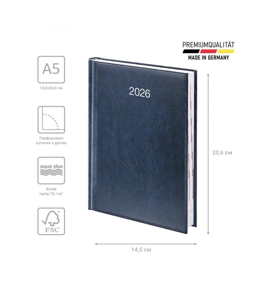 Новий Щоденник дат. 2026 Стандарт Miradur А5, 73-795 60 306, синій