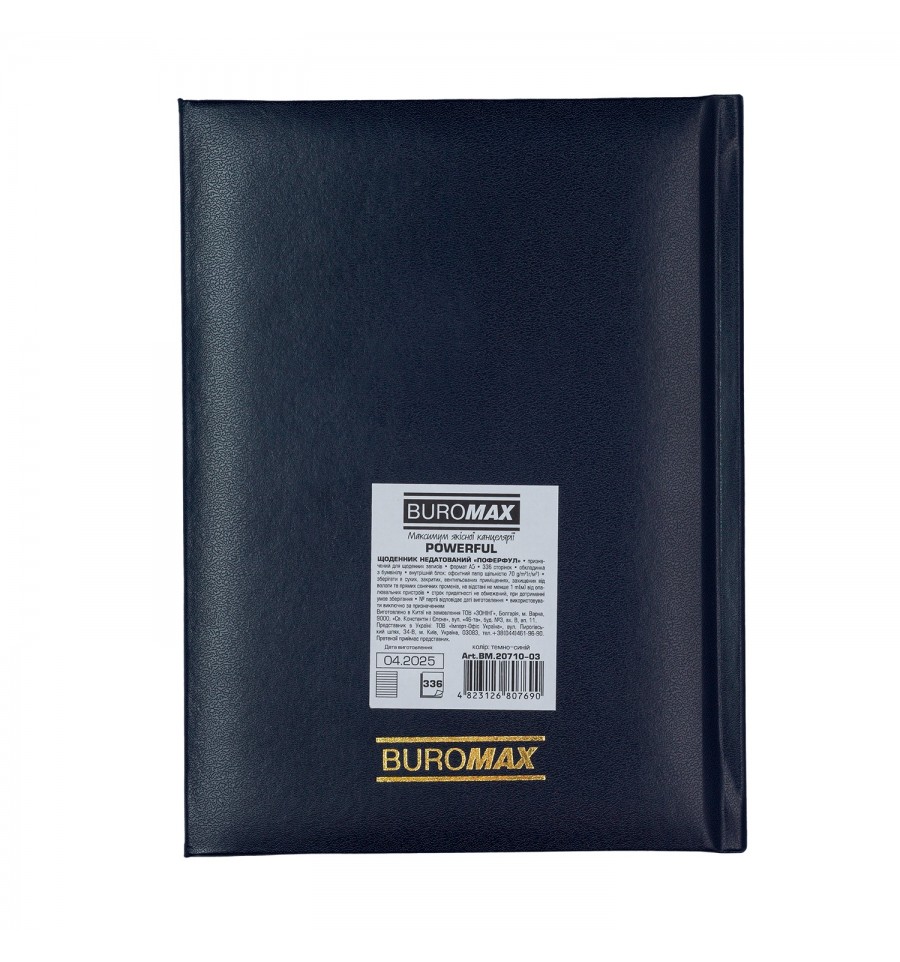 Щоденники BUROMAX - це завжди широкий вибір самих різних обкладинок, фактур і кольорів. Ми знайдемо підхід до серця кожного покупця!Жорстка обкладинка з бумвінілу з поролоном щоденника POWERFUL має поверхню, що візуально імітує тканину, виконана у патріотичному мотивуючому дизайні з яскравими акцентами - тиснення Державного Герба та напису срібною фольгою. Гармонійно доповнює дизайн тонований сріблом зріз внутрішнього блоку.Недатований щоденник зберіг переваги датованого щоденника, але разом з тим, не залежить від дат, що дозволяє вести записи без хронології та в довільному порядку.Формат А5 336 сторінок Тверда обкладинка з бумвінілу з поролоном Внутрішній блок: офсетний папір кремового кольору щільністю 70 г/м² Закладка-лясе в колір обкладинки допоможе швидко знайти необхідну сторінку Перфоровані куточки аркушів Мапи України та Європи на форзацах Індивідуальна упаковка: картонна коробка Структура внутрішнього блоку:Сторінка для внесення особистої інформації Планінг на рік Інформаційно-довідковий блок: телефонні коди мобільних операторів та обласних центрів України, літерні автомобільні коди країн, таблиця відстаней між обласними центрами України, довідник систем вимірювання, міжнародні знаки відповідності, знаки догляду за одягом Недатовані сторінки з лініюванням у лінію, мають рядок для напису дати Алфавітна книга для внесення контактів Щоденник BUROMAX формату А5 - це вибір, перевірений часом, найпопулярніший формат для незамінного помічника в плануванні Вашого робочого дня!