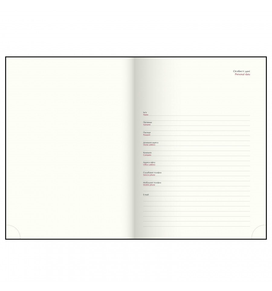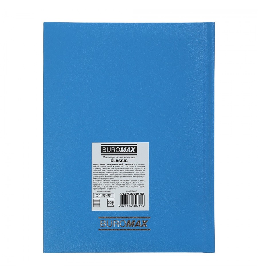 Щоденники BUROMAX - це завжди широкий вибір самих різних обкладинок, фактур і кольорів. Ми знайдемо підхід до серця кожного покупця!Жорстка обкладинка з бумвінілу з поролоном щоденника CLASSIC виконана під фактуру натуральної шкіри в класичному дизайні з яскравими акцентами - тиснення декоративних елементів срібною фольгою та тонований сріблом зріз внутрішнього блоку.Недатований щоденник зберіг переваги датованого щоденника, але разом з тим, не залежить від дат, що дозволяє вести записи без хронології та в довільному порядку.Формат А5 336 сторінок Тверда обкладинка з бумвінілу з поролоном Внутрішній блок: офсетний папір кремового кольору щільністю 70 г/м² Закладка-лясе в колір обкладинки допоможе швидко знайти необхідну сторінку Перфоровані куточки аркушів Мапи України та Європи на форзацах Індивідуальна упаковка: картонна коробка Структура внутрішнього блоку:Сторінка для внесення особистої інформації Планінг на рік Інформаційно-довідковий блок: телефонні коди мобільних операторів та обласних центрів України, літерні автомобільні коди країн, таблиця відстаней між обласними центрами України, довідник систем вимірювання, міжнародні знаки відповідності, знаки догляду за одягом Недатовані сторінки з лініюванням у лінію, мають рядок для напису дати Алфавітна книга для внесення контактів Щоденник BUROMAX формату А5 - це вибір, перевірений часом, найпопулярніший формат для незамінного помічника в плануванні Вашого робочого дня!На цій моделі щоденника можливо тиснення як сліпим методом, так і методом фольгування.