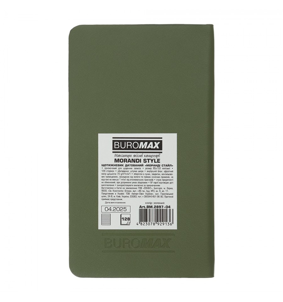 Щотижневик датов. 2026 кишеньк. MORANDI STYLE BM.2897-04, 85х153, зелений, штуч. шкіра