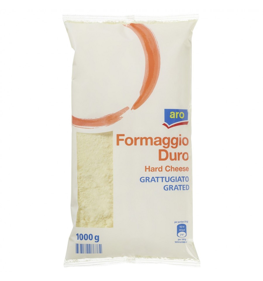 Суміш тертих твердих сирів, ``Aro". Масова частка жиру у сухій речовині не менше 32 %. Склад: сир твердий (МОЛОКО) та сир твердий “Грана Падано” 20% (МОЛОКО, сіль, ферменти тваринного та рослинного походження, консервант: лізоцим (ЯЙЦЯ). Енергетична цінність на 100г: 1445 кДж (kJ) / 348 ккал (kcal). Жири – 24г, з них насичені - 16г, вуглеводи - < 0,5 г, з них цукри - < 0,5 г, білки – 31г, сіль - 1,90г. Зберігати за температури від 2 °C до 8 °C. Запаковано в захисному середовищі. Після відкриття паковання вжити протягом 5-ти діб. Дата «Вжити до» та номер партії (L), номер затвердження виробника: зазначені на пакованні. Країна походження: Польща. Імпортер: ТОВ “МЕТРО Кеш енд Кері Україна”, 02140, Україна, м. Київ, просп. П. Григоренка, 43. З питань щодо продукту звертайтеся за телефоном гарячої лінії імпортера: 0 800 501 401 (безкоштовно в межах України). Маса нетто: 1000 г.