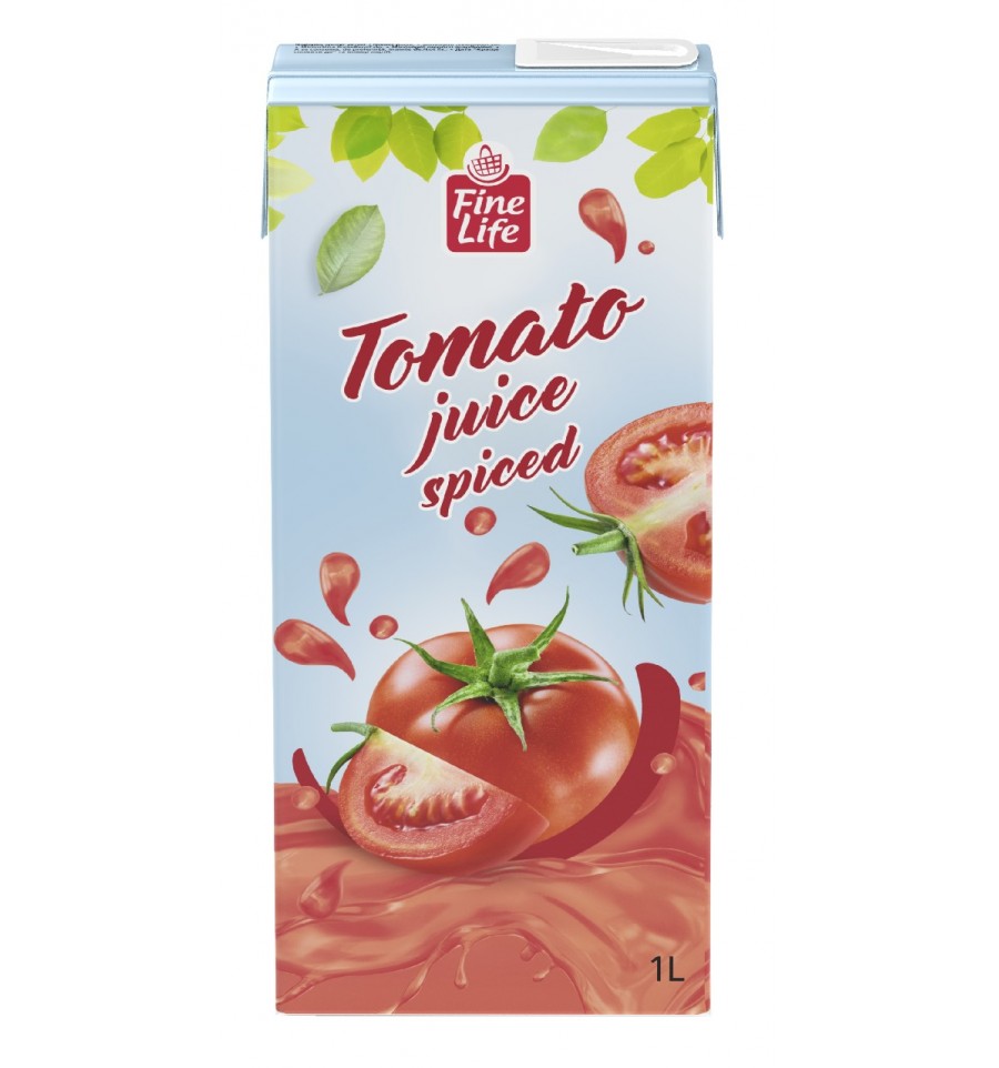 Пряний томатний сік, відновлений з концентрату, з сіллю, пастеризований ТМ "Fine Life". Склад: вода, концентрований томатний сік, сіль 0,6 %, чорний перець, базилік. Енергетична цінність на 100 мл: 85 кДж/20 ккал, жири – 0 г, з них насичені – 0 г, вуглеводи – 3,6 г, з них цукри – 1,8 г, білки – 0,9 г, сіль – 0,60 г. Дата «Краще спожити до» та номер партії: зазначені вгорі паковання. Умови зберігання: зберігати у прохолодному, темному місці. Після відкриття зберігати у холодильнику та спожити протягом 2 діб. Виробник: Szobi Italgyártó Kft, Ady Endre utca 22., 2628 Szob, Угорщина. Виготовлено в Угорщині. Імпортер: ТОВ "МЕТРО Кеш енд Кері Україна", просп. П. Григоренка, 43, м. Київ, 02140, Україна. З питань щодо продукту звертайтесь за тел. гарячої лінії імпортера: 0800 501 401 (безкоштовно в межах України). Маса нетто: 1 л