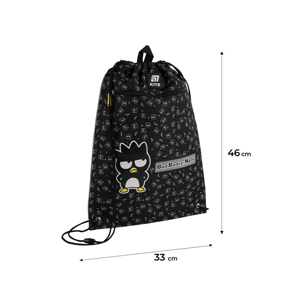 Сумка для взуття Kite HK25-601M-3 виготовлена з міцного поліестеру. Незамінний аксесуар для кожного школяра: у ній дуже зручно носити та зберігати змінне взуття та форму. Маст-хев для фізкультури, танців та спортивних секцій. Сумка неймовірно легенька та компактна, у складеному вигляді поміститься навіть у кишені.Простота у використанні. Закривається та відкривається одним рухом. З двох сторін затягується шнурками та перетворюється на міні-рюкзачок, який можна носити за спиною чи на плечі. Для зручності передбачена петля для підвішування сумки на гачок або вішалку.Головна особливість – практичність! Міцний зносостійкий поліестер витримує навантаження на розриви, принт стійкий до вигоряння. Сумочка легко очищується після звичайного ручного прання, швидко висихає та довго зберігає свій первісний вигляд. Щільна тканина захищає одяг та вміст рюкзака від піску та можливих забруднень, які можуть бути на взутті.Безпека. Шнурки оснащені спеціальними пластиковими баклами, що автоматично розстібаються при сильному натягу. Таким чином вони миттєво звільняють дитину, якщо вона перетягне шнурок чи якимось чином заплутається у ньому.Стильний дизайн в ліцензії Bad Badtz Maru піднімає настрій та гармонійно доповнює шкільний лук. З таким красивим та зручним аксесуаром дитина відвідуватиме спортивні заняття з радістю.Трендова шкільна капсула. Сумка для взуття ідеально поєднується із рюкзаком Kite HK25-585M-1 та пеналом Kite HK25-662-3. Капсульна колекція в єдиному дизайні створює ефектний шкільний комплект, який цілий рік підніматиме настрій і мотивуватиме вчитися із задоволенням.Особливості:1 відділення – містке та просторе; передня кишеня на блискавці – додатковий відокремлений простір для речей; петля для вішалки – для зручного зберігання; легко закривається – затягується шнурками; матеріал – поліестер: міцний та простий у догляді; розмір: 46x33 см – оптимальне розміщення пари взуття; по боках сумки розташовані світловідбивні стрічки, щоб дитина була помітною на дорозі в темний час доби; стильний дизайн – для натхнення; можна зібрати капсульну колекцію з рюкзаком та пеналом; призначена для перенесення та зберігання спортивного взуття та одягу.