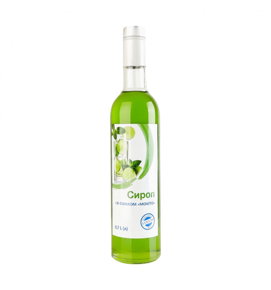 Сироп Aro зі смаком мохіто 0,7л. Склад: цукор білий, вода питна підготовлена, патока, регулятори кислотності: лимонна кислота, цитрати натрію; ароматизатори, загущувачі: ксантанова камедь, каррагінан; антиоксидант: аскорбінова кислота; консервант: сорбінова кислота; барвники: бета-каротин, діамантовий синій FCF. Eнергетична цінність на 100мл продукту: 264 ккал / 1106 кДж, Жири - 0 г, Насичені жири - 0 г, Вуглеводи - 66 г, Цукри - 64 г, Білки - 0 г, Сіль - 0 г. Термін придатності - 540 діб. Зберігати за температури від 0° С до +22 °С та за відносної вологості не більше 75%. Відкритий сироп рекомендовано зберігати не більше 45 діб при відповідних умовах. Виробник: ТОВ "Майстерня смаків". Виробник: просп. Слобожанський, 6, м. Дніпро, 49000, Україна. Країна: Україна. Об`єм: 0,7л.