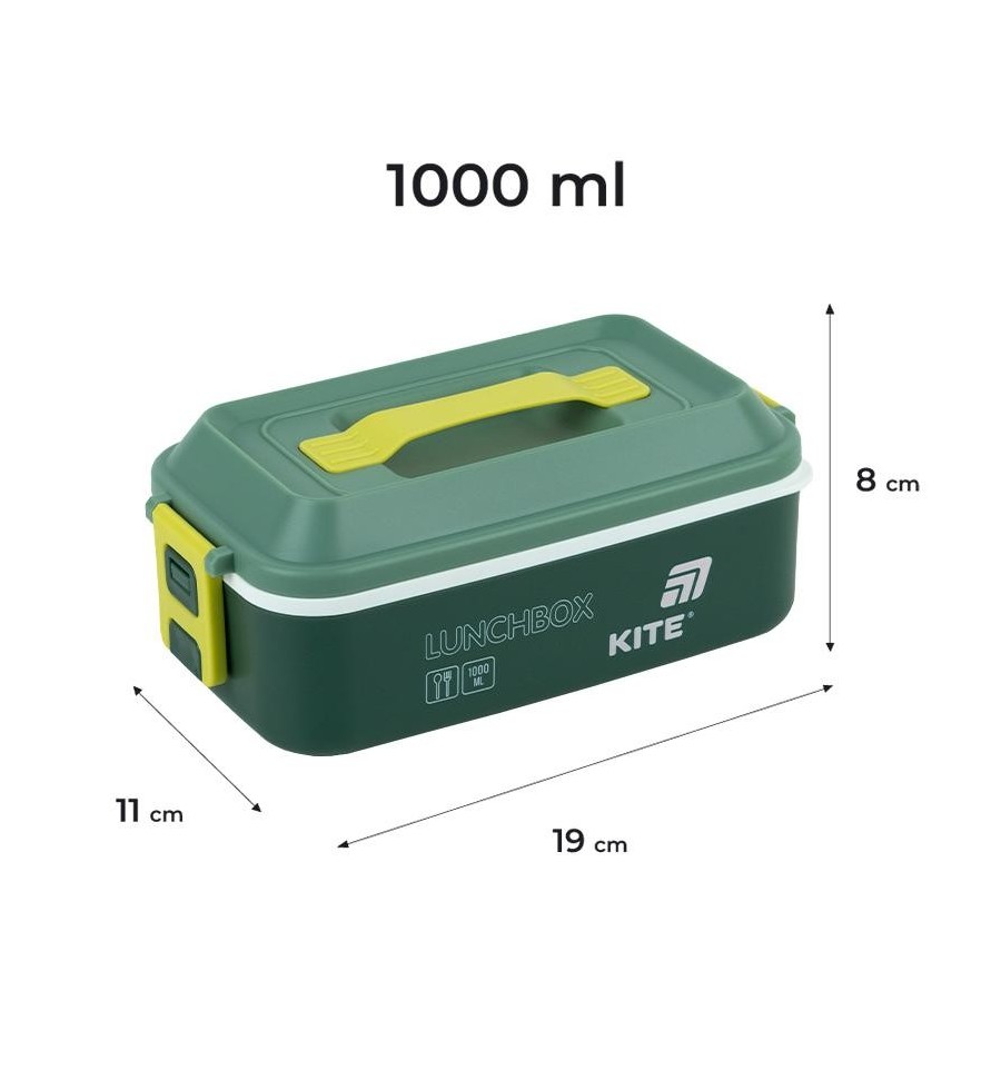 Ланчбокс Kite K25-1183-3 1000 мл — стильний та місткий контейнер для обіду. Ідеальний для школи, офісу, прогулянок, пікніків і подорожей.Контейнер виготовлений із безпечного харчового пластику, який не вбирає запахів, не містить бісфенол-А та не змінює смак їжі.Міцна кришка з ручкою зручно лягає в руку та забезпечує щільне закриття. Бічні клямки надійно фіксують кришку.Усередині — одне містке відділення з додатковою внутрішньою кришкою. Ідеально підходить як для повноцінного обіду, так і для перекусу.У комплекті — пластикова ложка та виделка, зручно зафіксовані всередині.Особливості:об’єм 1000 мл — оптимальний для повсякденного використання; 1 основне відділення з додатковою кришкою — зручно зберігати обід; міцна кришка з ручкою — зручно носити з собою; безпечний харчовий пластик без BPA — не вбирає запахів, не впливає на смак; міцні бічні клямки — усе щільно закрито; ложка та виделка в комплекті — не потрібно брати окремі столові прибори; підходить для зберігання в холодильнику та миття в посудомийній машині; розмір 20,8х11,5х8,3 см.